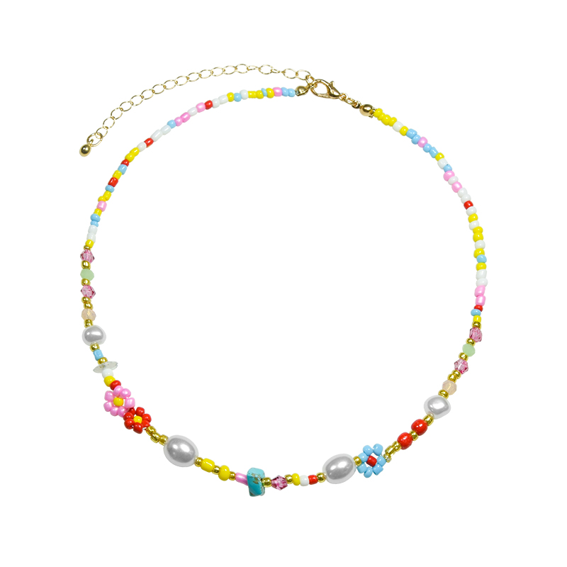 AWE官方彩色串珠小花珍珠项链LISA明星同款锁骨链颈链女choker链