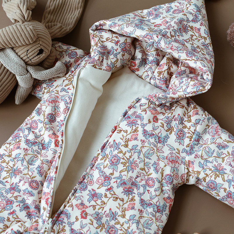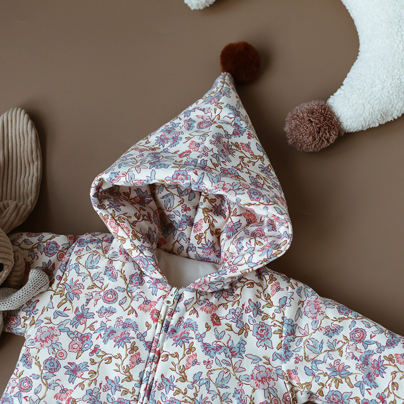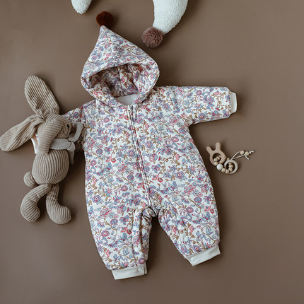 婴姿婴儿连体衣冬季纯棉夹棉女宝宝衣服休闲外出抱衣加厚连帽爬服