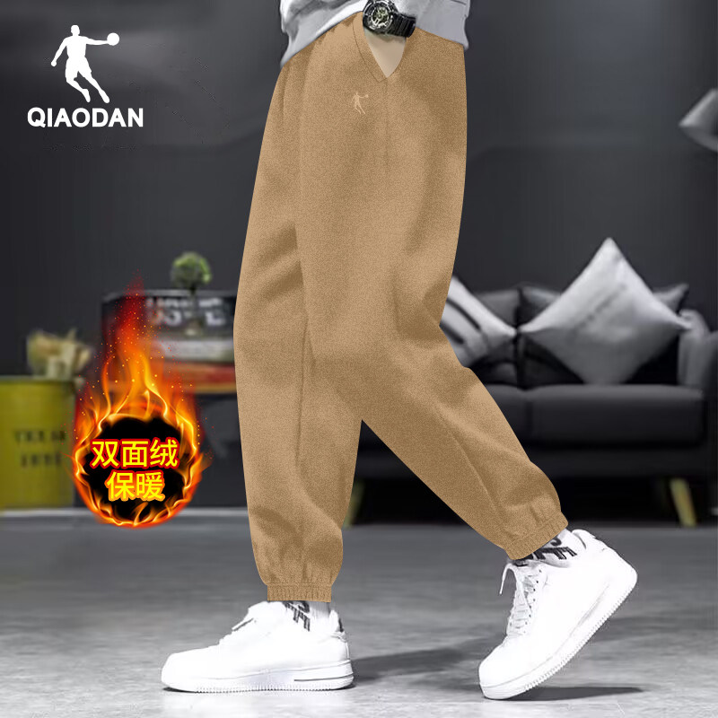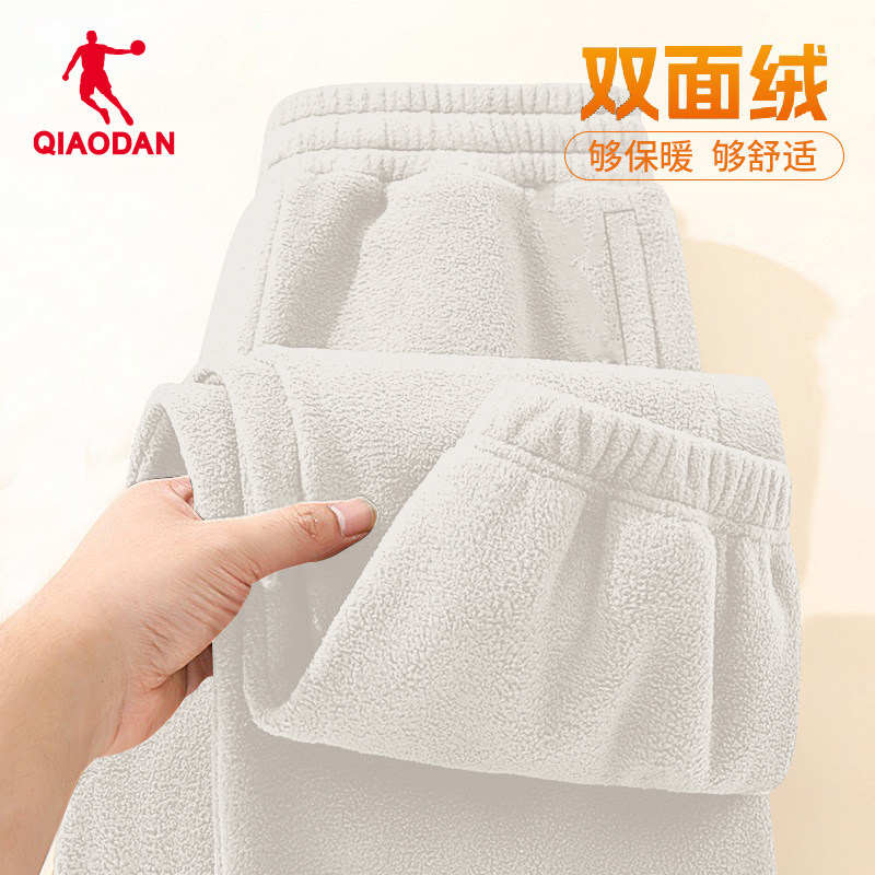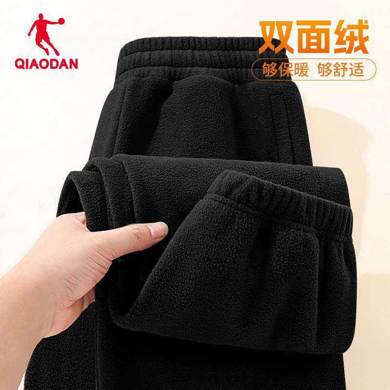 乔丹摇粒绒长裤男加绒保暖裤子冬季新款抓绒卫裤男宽松束脚运动裤