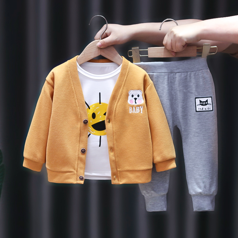 全棉纯棉男童春秋套装0-5岁新婴儿童帅气宝宝春装洋气休闲衣服三