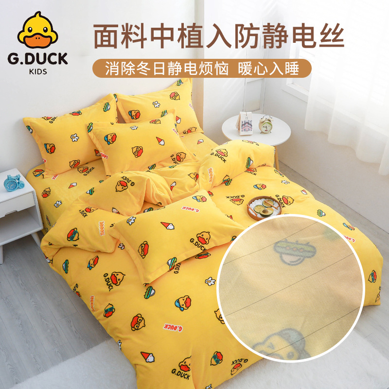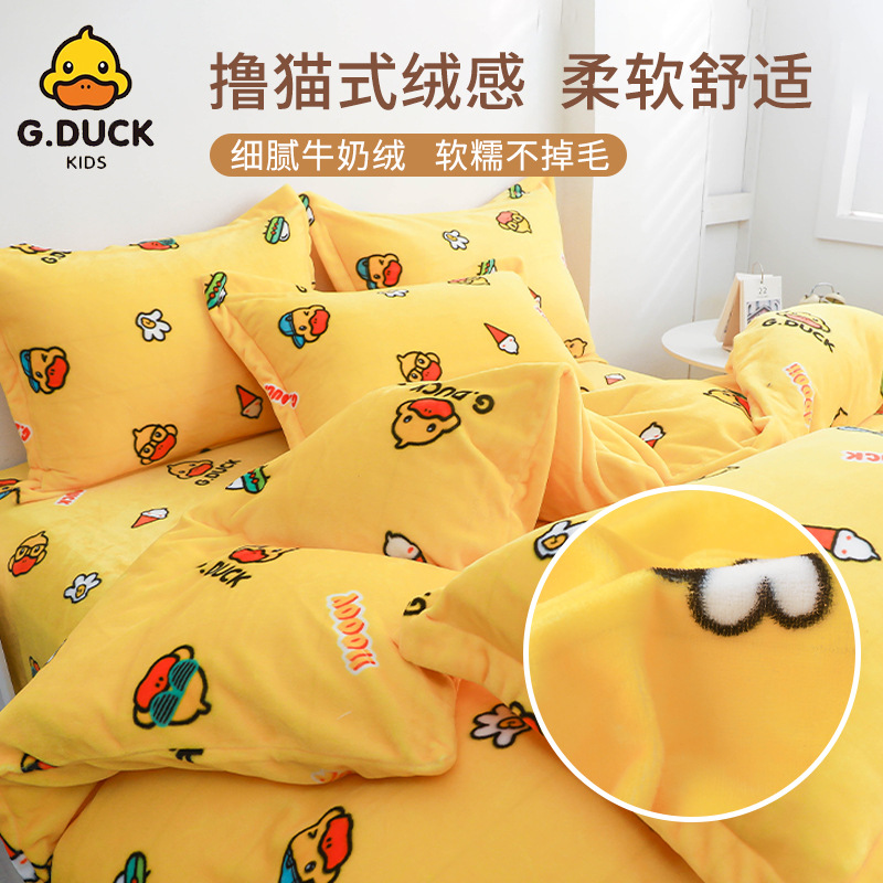 小黄鸭纯棉牛奶绒四件套全棉儿童卡通床品宿舍三件套被套床单床笠