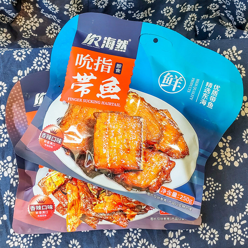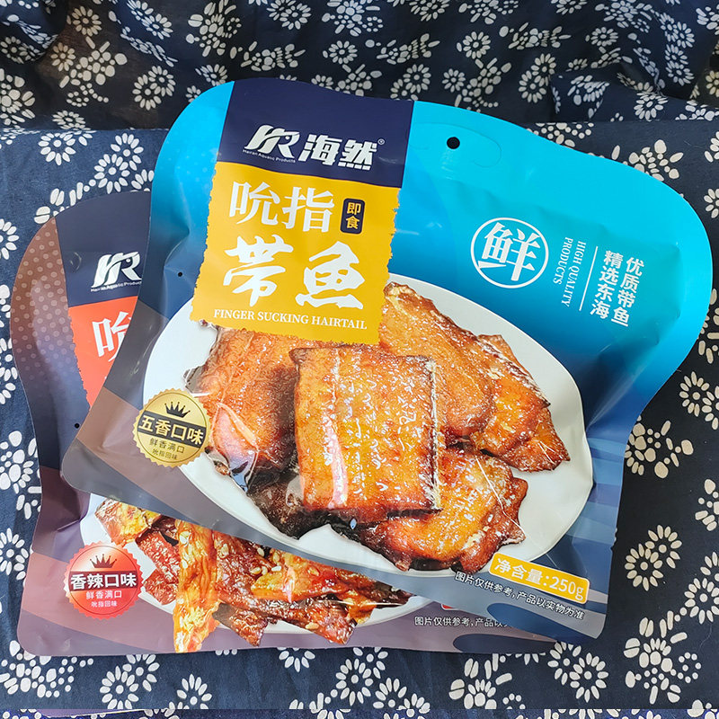 海然吮指香辣鳗鱼片250g即食小黄鱼海鲜零食五香带鱼舟山特产小吃