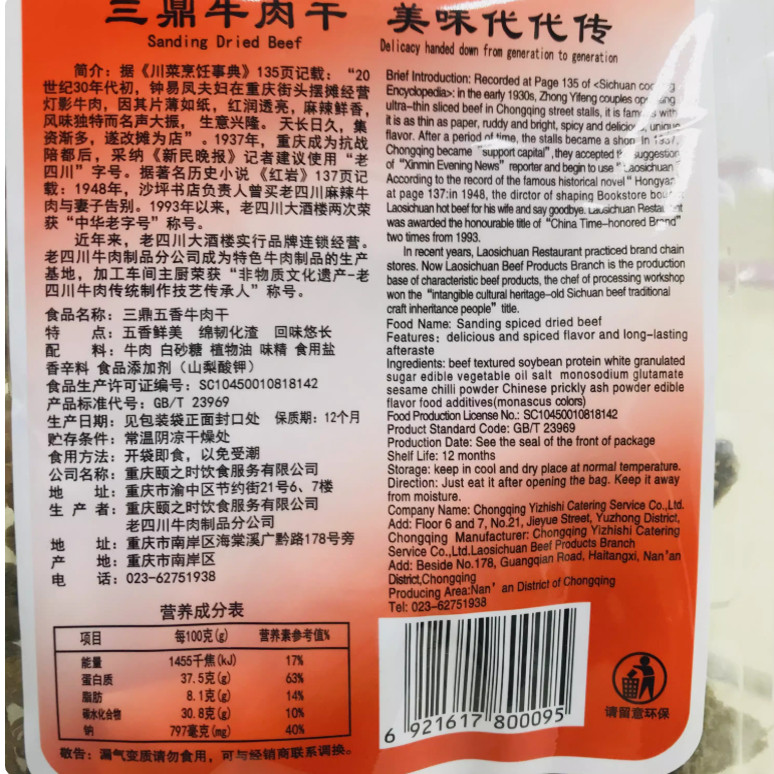 重庆特产三鼎牛肉干四川特产五香牛肉干香辣大包装休闲零食小吃