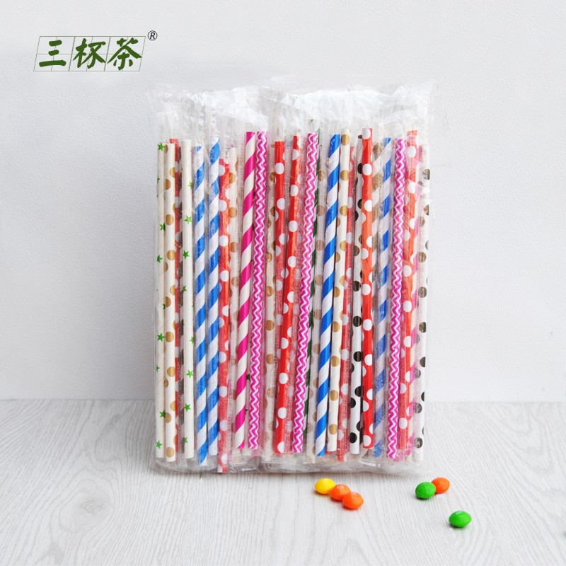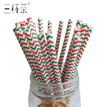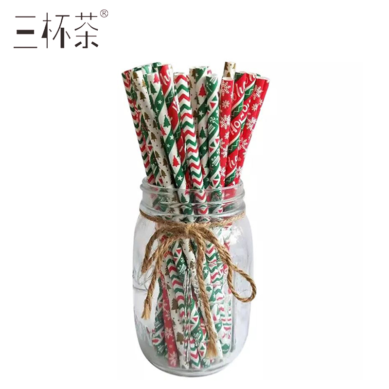 新年家用彩色一次性环保纸吸管可爱创意卡通果汁饮料水果签