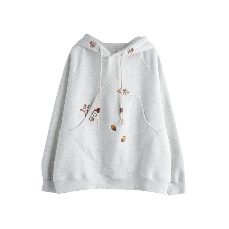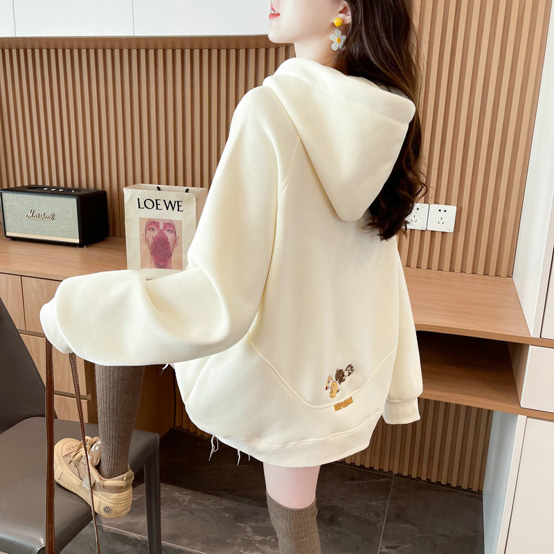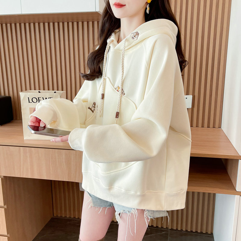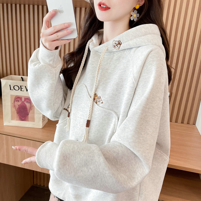 加绒加厚宽松慵懒风刺绣卫衣女