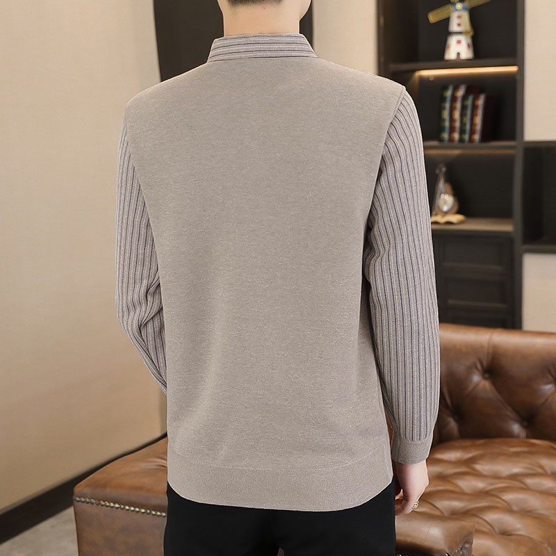 秋冬季假两件衬衫领毛衣男士加绒加厚针织打底衫青年男装保暖上衣