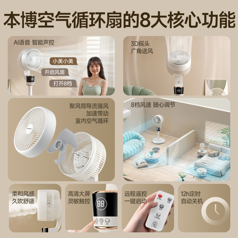 本博空气循环扇2026新款家用电风扇音静落地遥控超大风力立式卧室