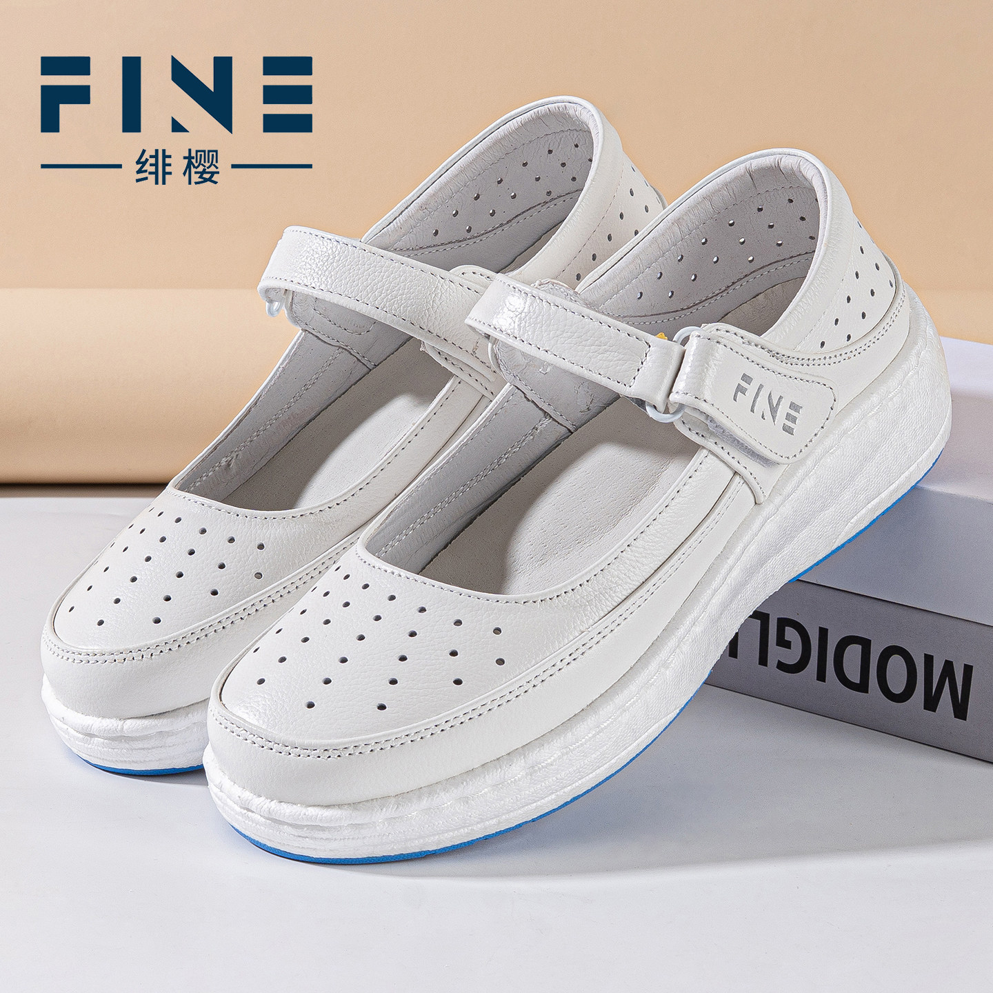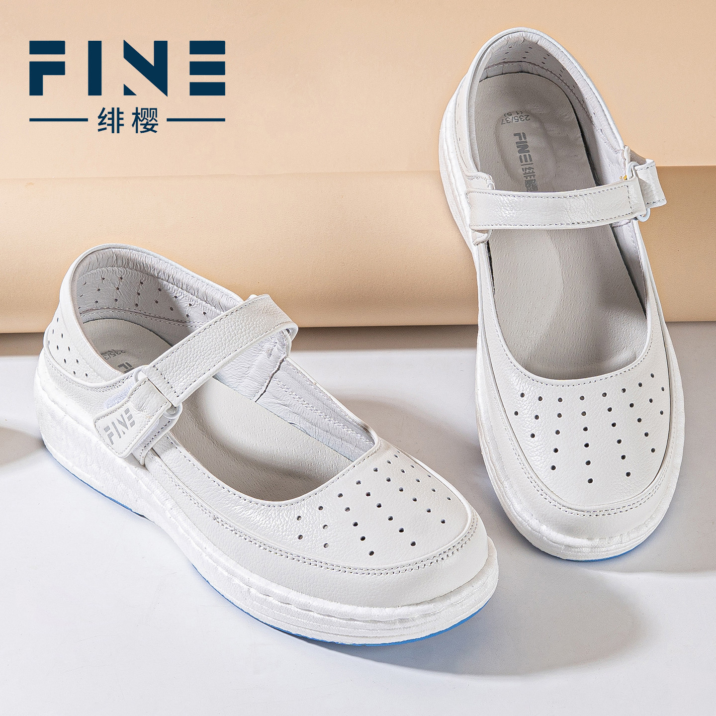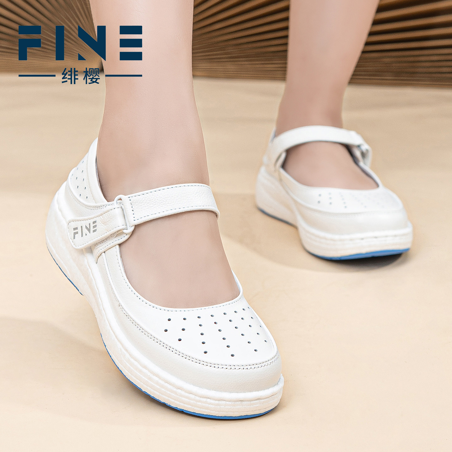 绯樱真皮护士鞋女软底透气不累脚头层牛皮防滑舒适白色医护工作鞋