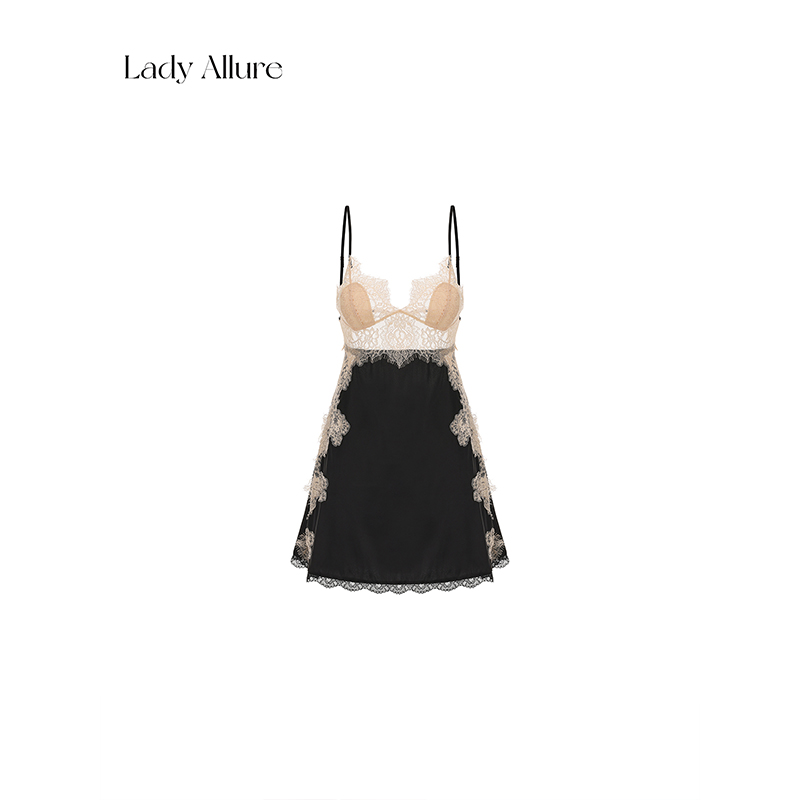 「LA」情迷之夜*法式禁欲性感睡衣约会纯欲薄款拼接蕾丝吊带睡裙