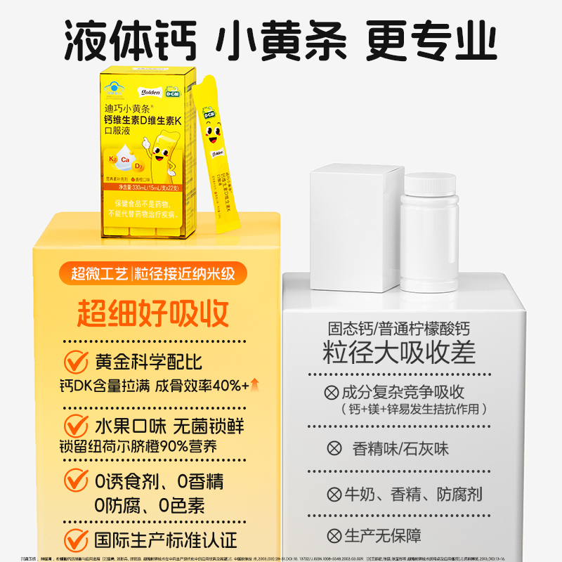 迪巧小黄条钙维生素D维生素K口服液儿童小孩补液体钙d3K2钙自营
