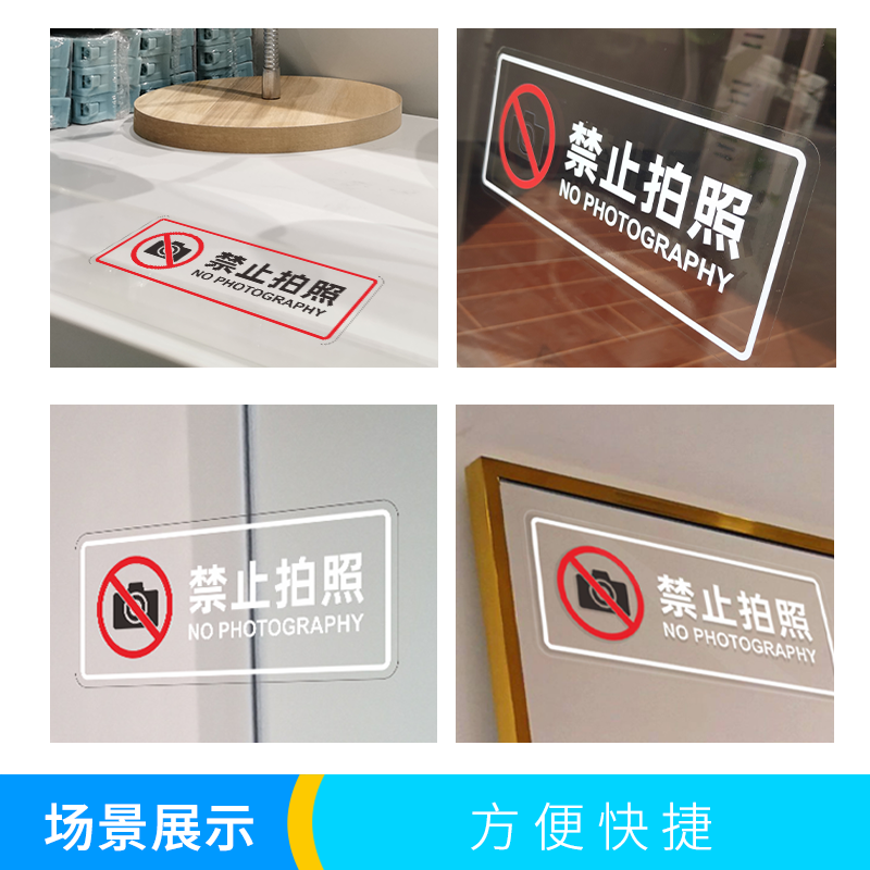禁止拍照透明标识贴纸服装店玻璃门私人区域严禁拍摄温馨提示牌警示贴定制2张装
