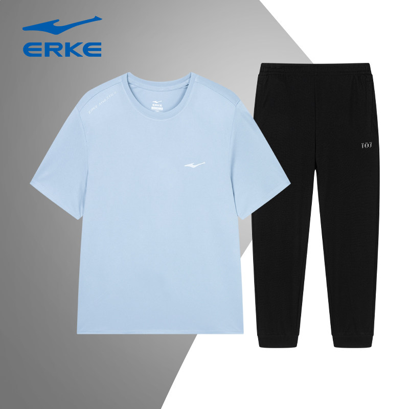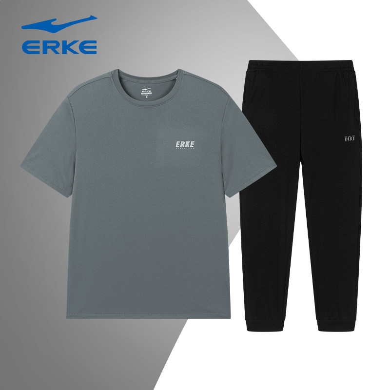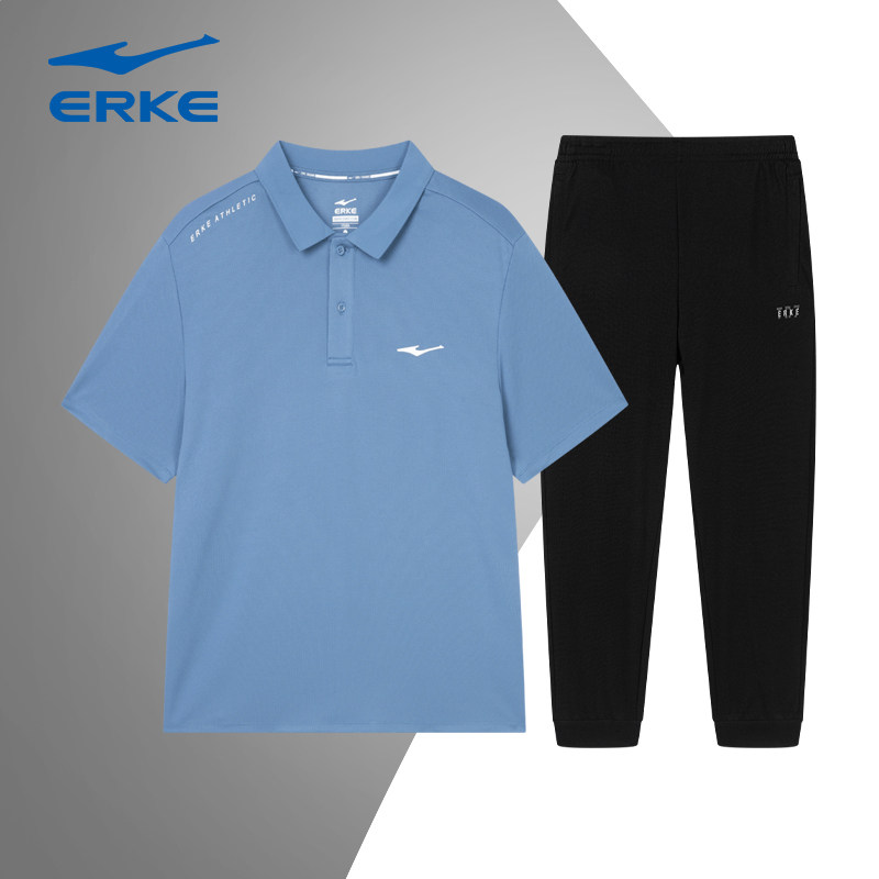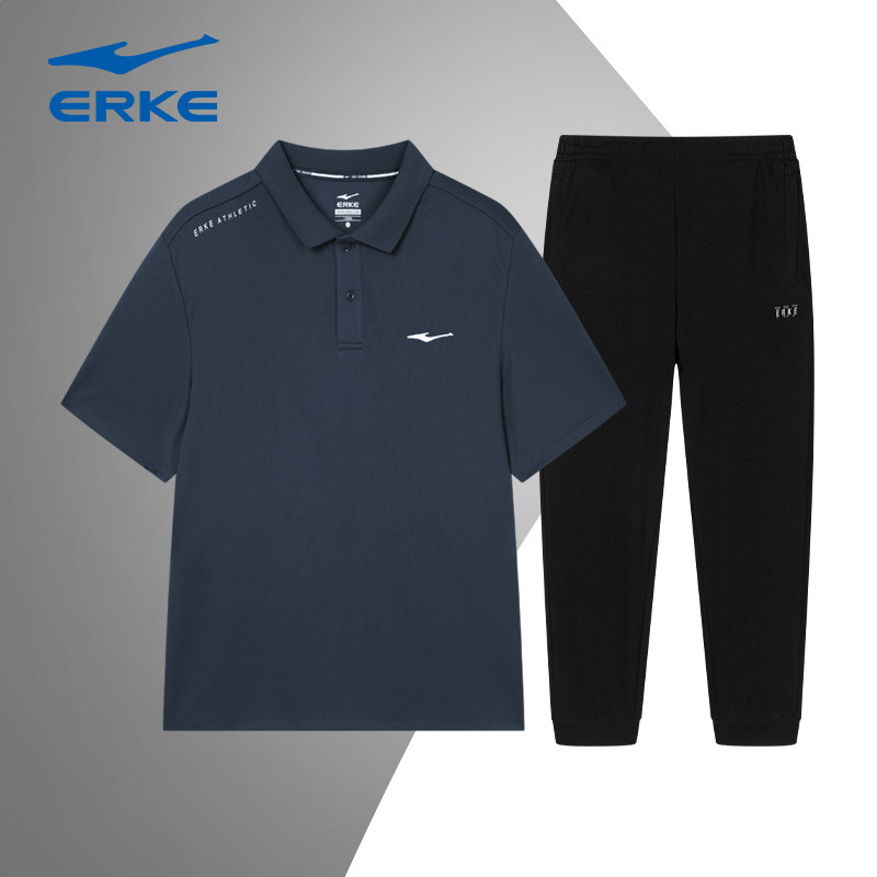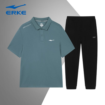 鸿星尔克运动套装男2026冬季新款官方旗舰正品男士长裤短袖两件套