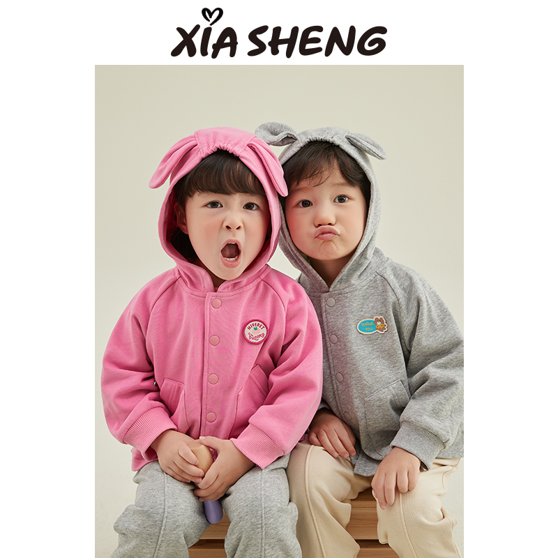 夏生兔耳朵磨毛外套男女童休闲上衣宝宝百搭卫衣外套儿童春装新款