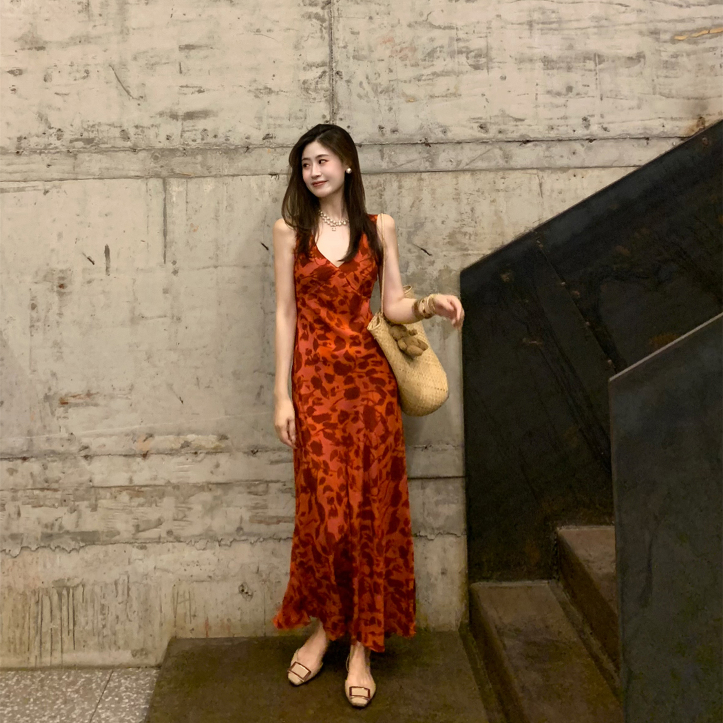Echoone Lost in summer 斜裁度假风连衣裙女修身显瘦V领背心长裙