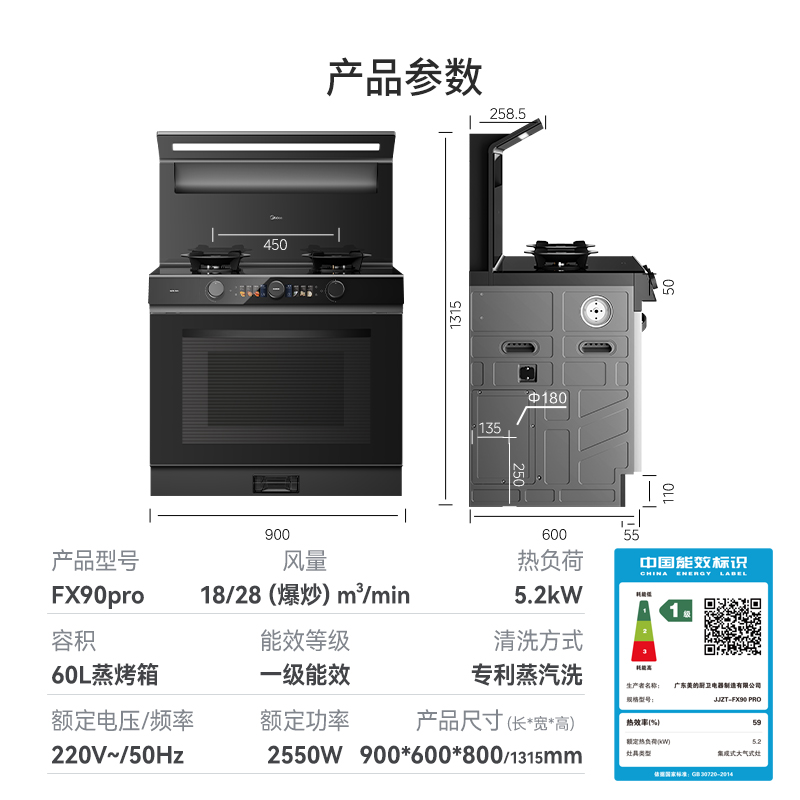 Midea/美的 FX90 PRO晴空集成灶蒸烤一体大吸力变频蒸汽洗自清洁