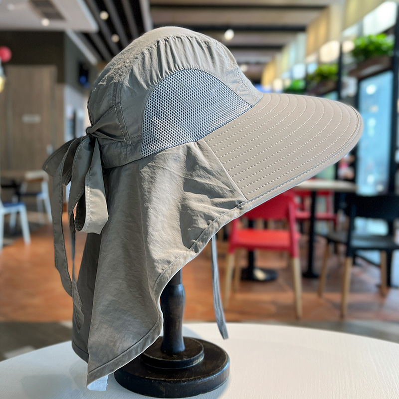韩版蝴蝶结护颈遮阳帽女户外大檐防紫外线太阳帽夏季钓鱼登山帽男