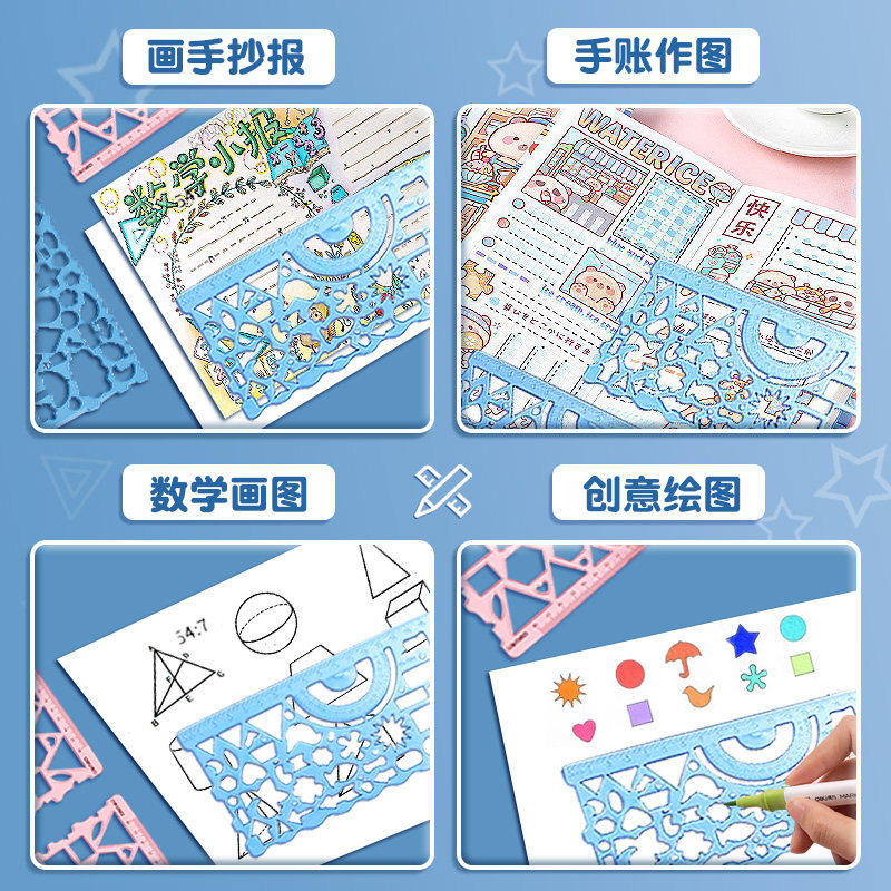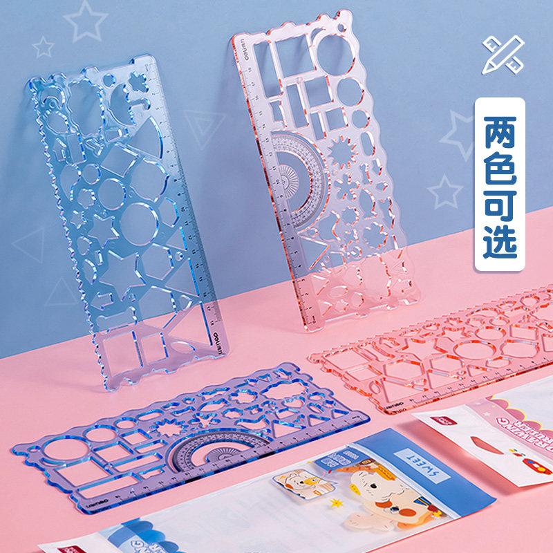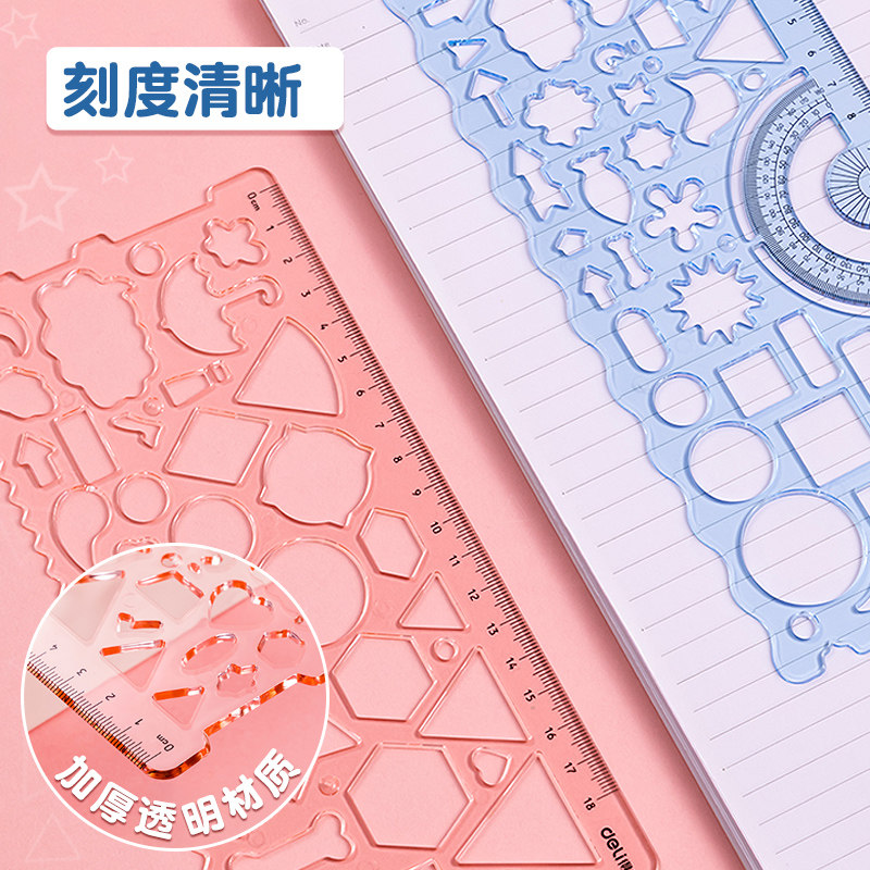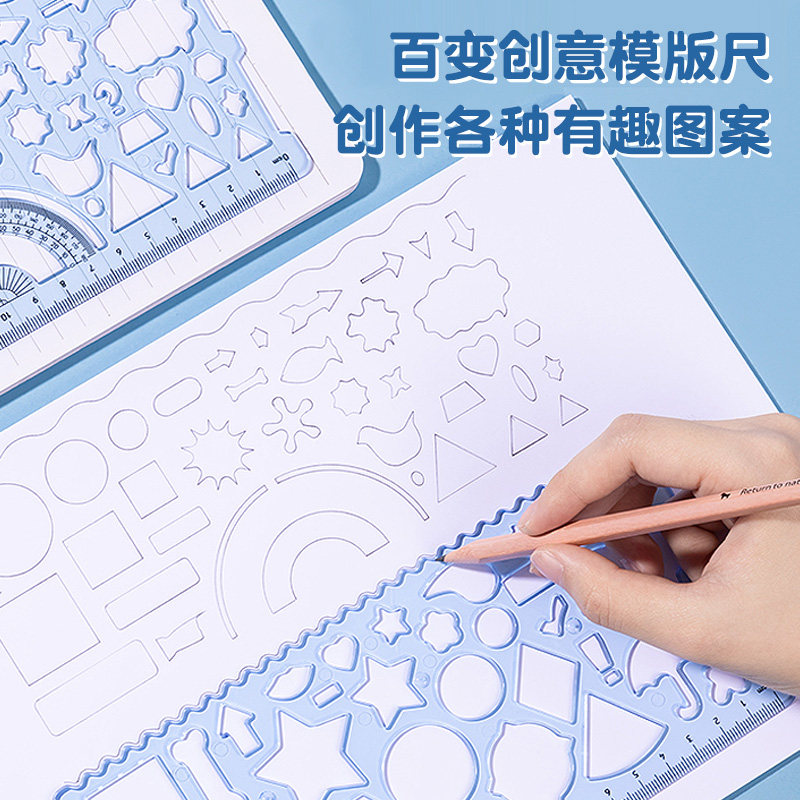 得力尺子小学生手抄报万花尺模板尺一二年级儿童绘画直尺多功能尺子魔幻套装几何绘图图形尺镂空画画神器文具