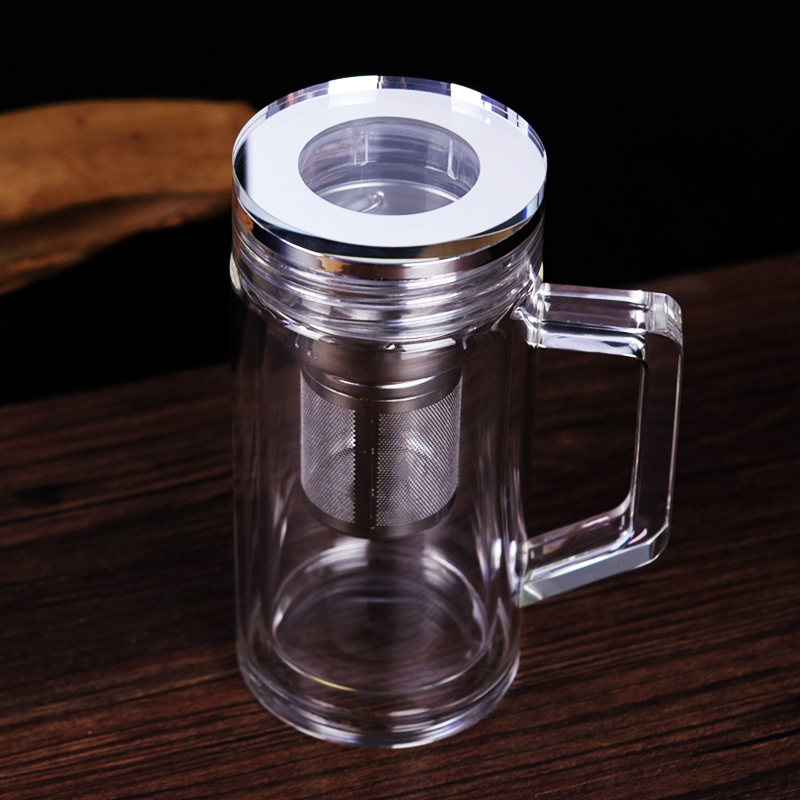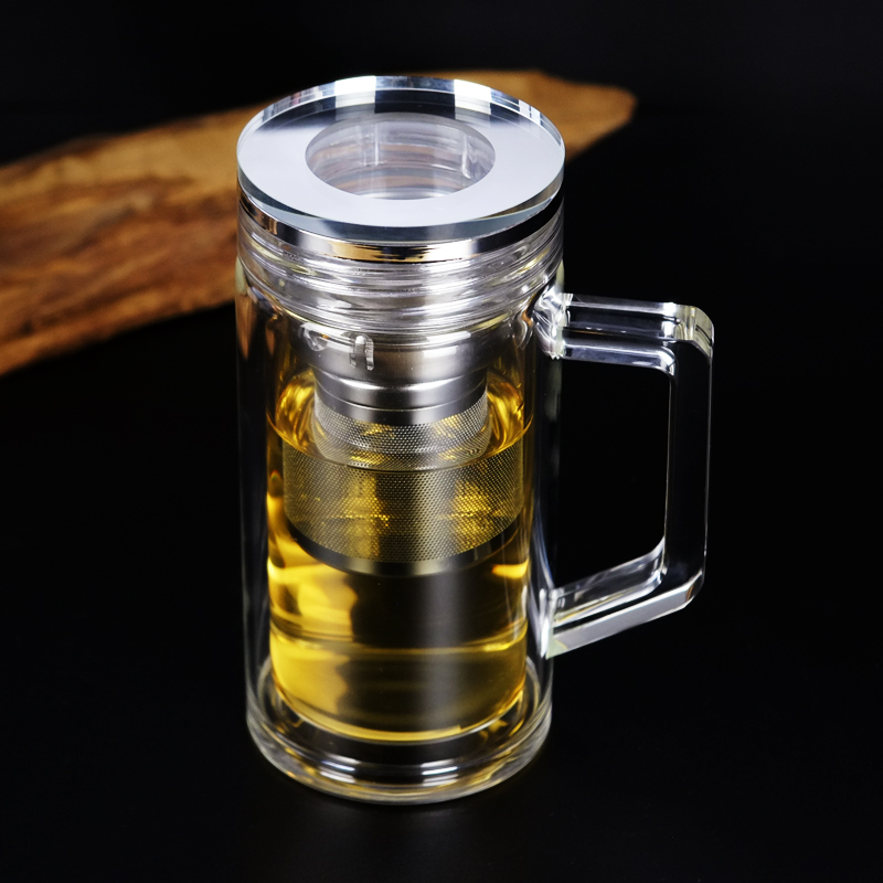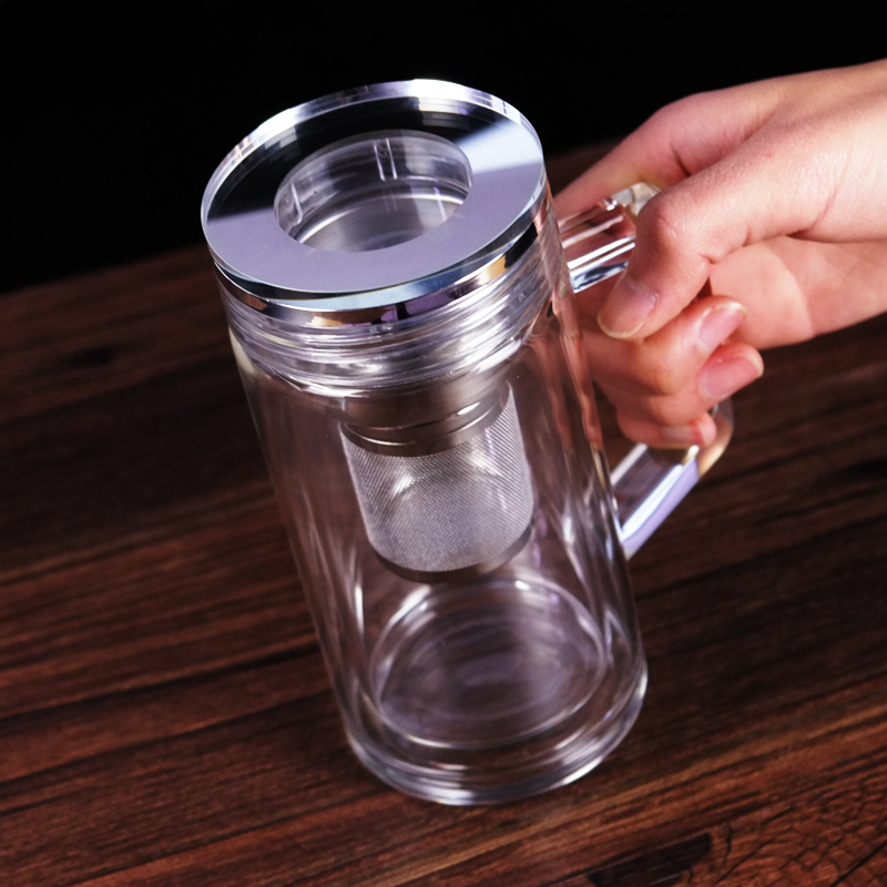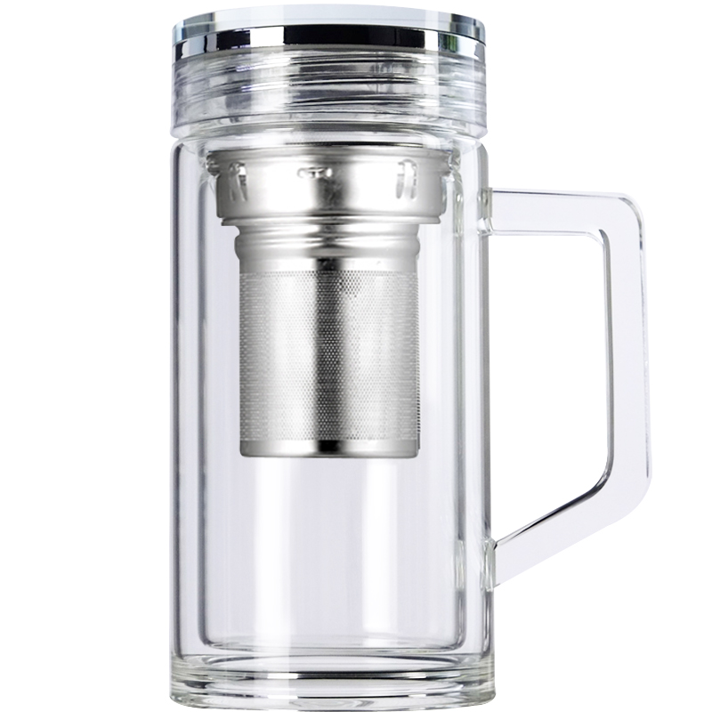 简约隔热双层玻璃杯加厚男士茶杯子泡茶杯带滤网女家用办公室水杯