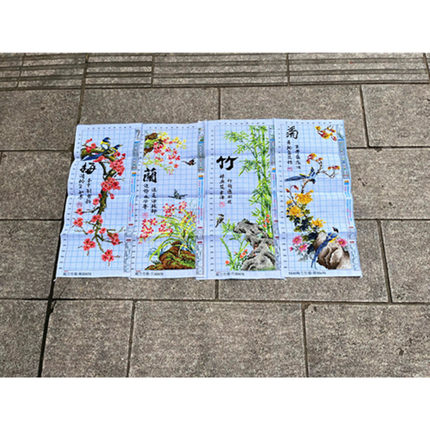 兔妈妈纯手工十字绣成品梅兰竹菊