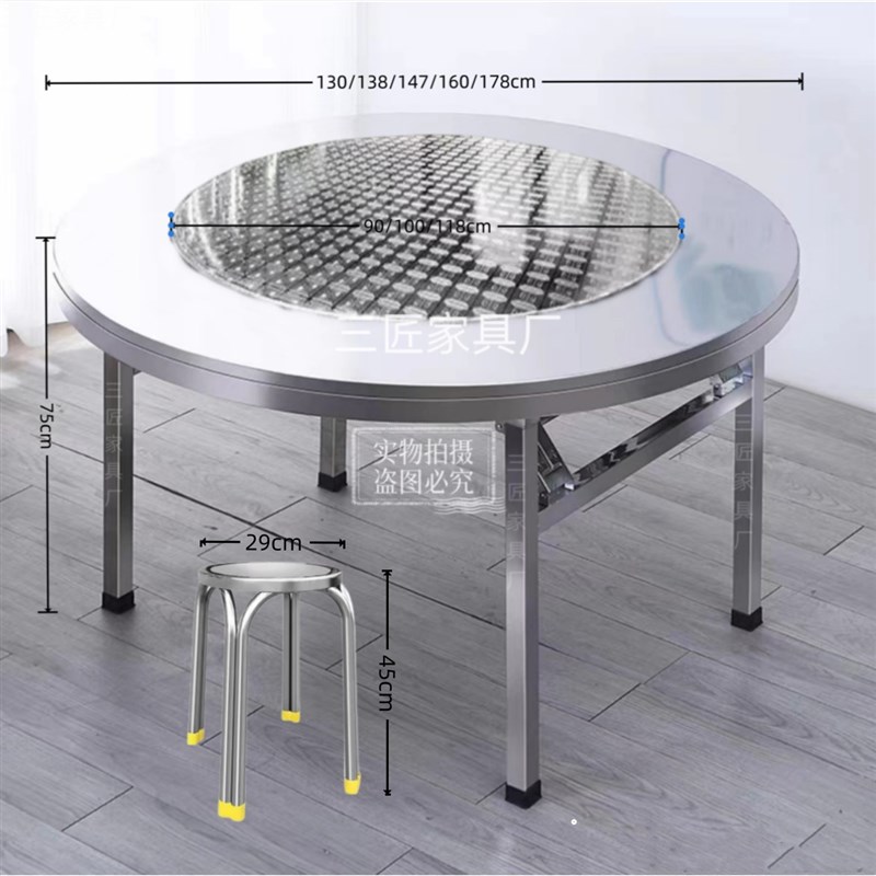 【内置转盘不锈钢圆桌】加厚加固食用级餐桌饭桌烤火折叠免安装