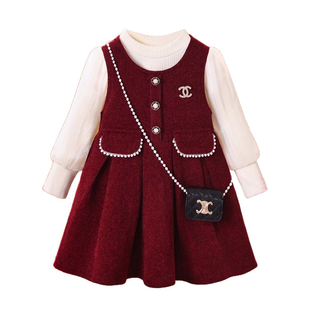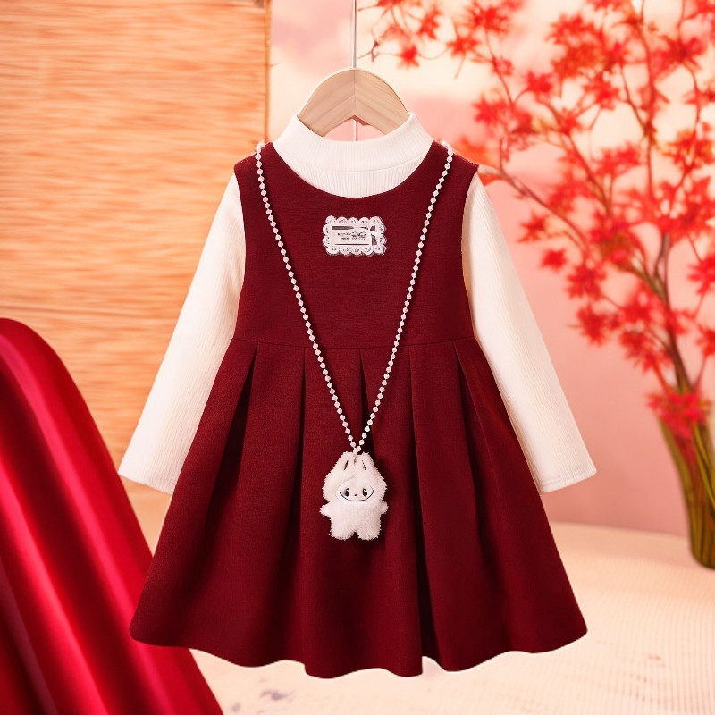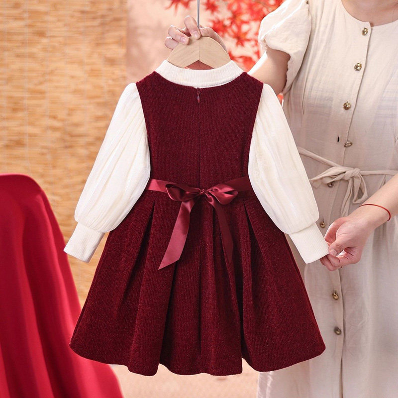 女童套装2025新款冬装红色公主裙