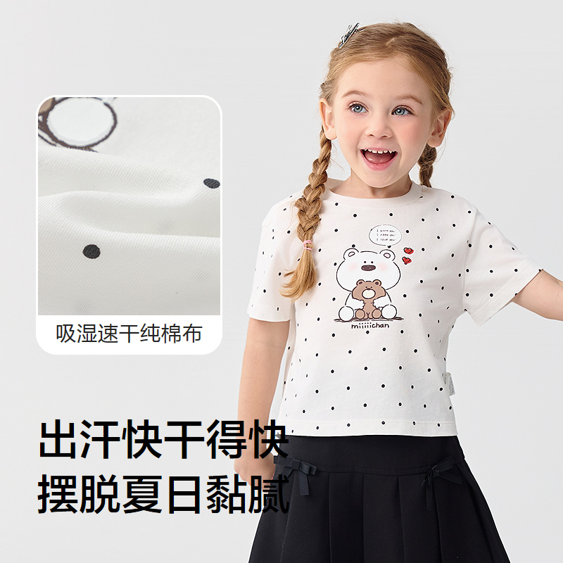 巴拉巴拉童装宝宝短袖女童t恤儿童上衣纯棉2025新款夏装可爱小熊