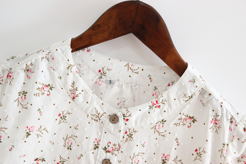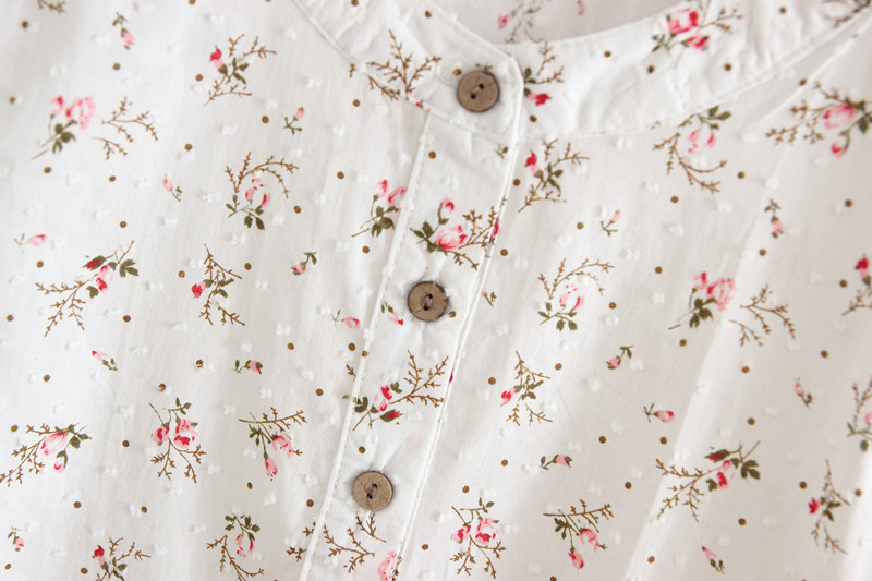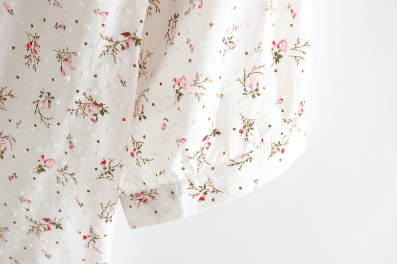 2025春夏季日式安静的上衣小碎花印花气质衬衫女款中袖女提花全棉