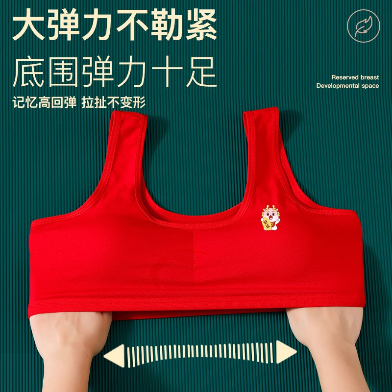 本命年女童发育期红色内衣套装龙年背心小学生儿童12纯棉13岁内裤