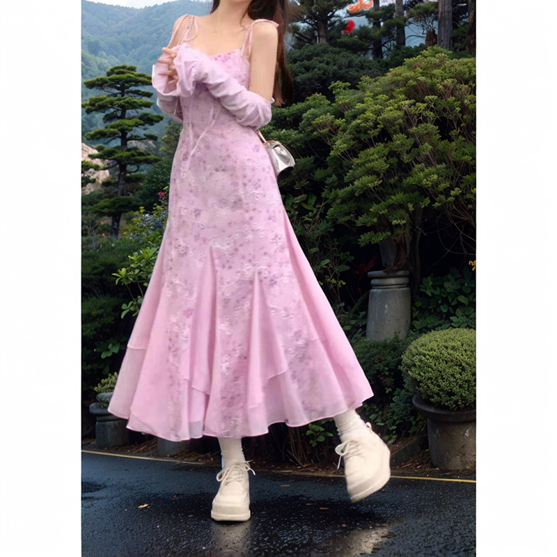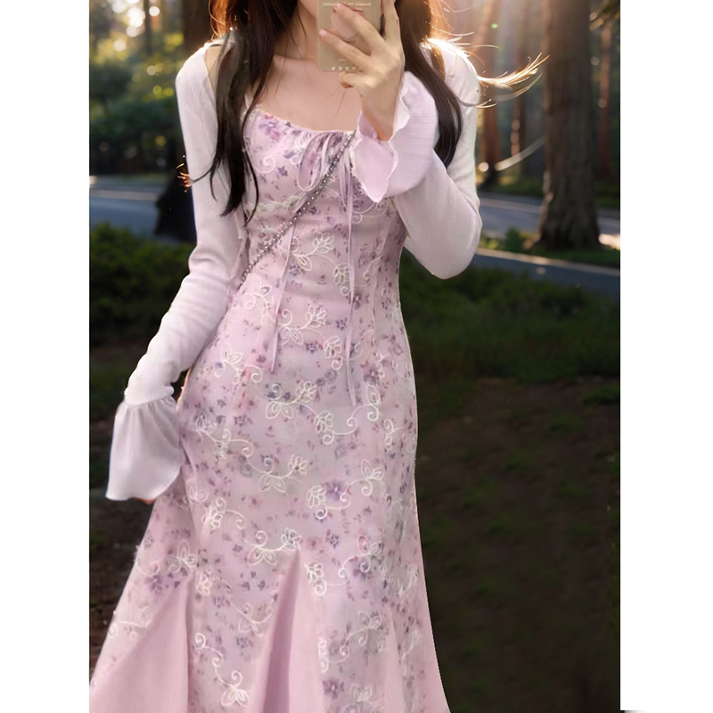 误入梦境春夏新款2025温柔风甜美显瘦连衣裙女百搭开衫淑女范套装