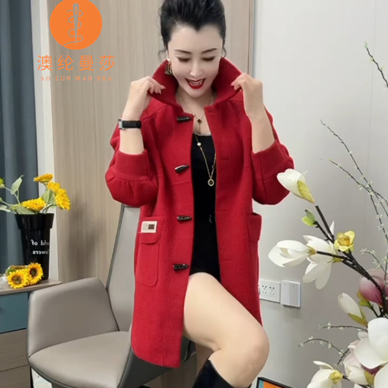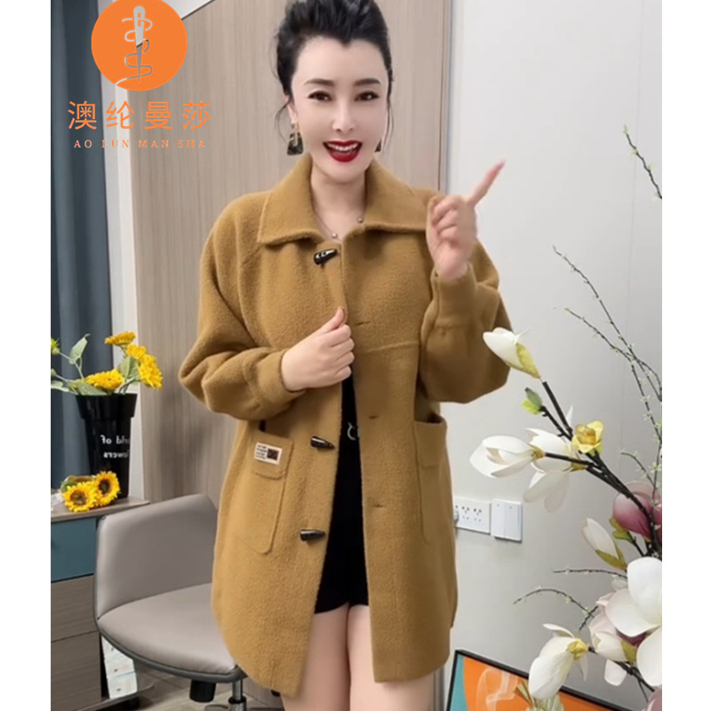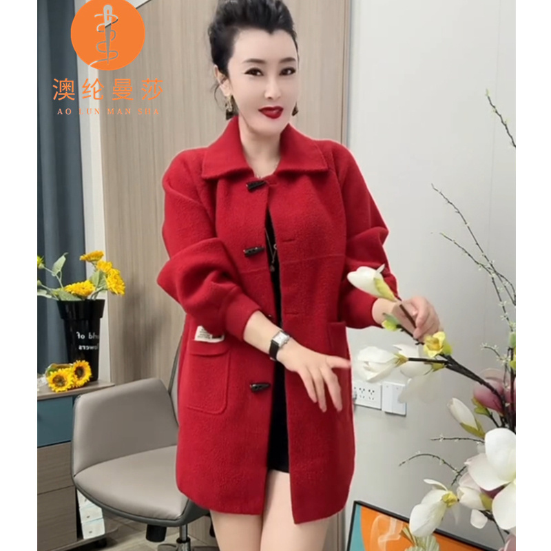 中老年妈妈装气质翻领呢子大衣秋冬新款宽松洋气中长款毛呢外套女