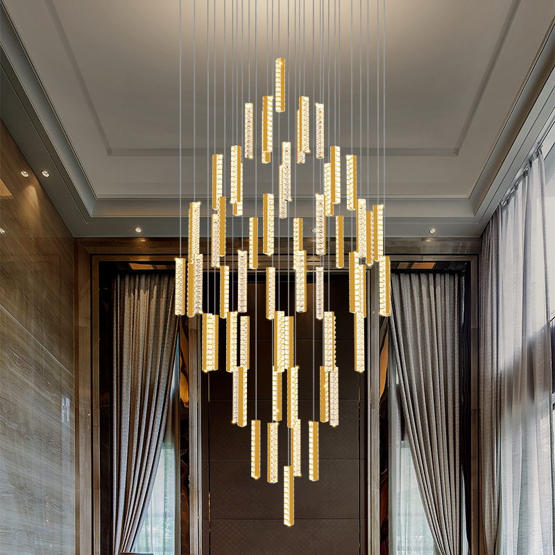 楼梯吊灯复式楼轻奢水晶大吊灯楼梯间旋转长吊灯中空别墅客厅灯具