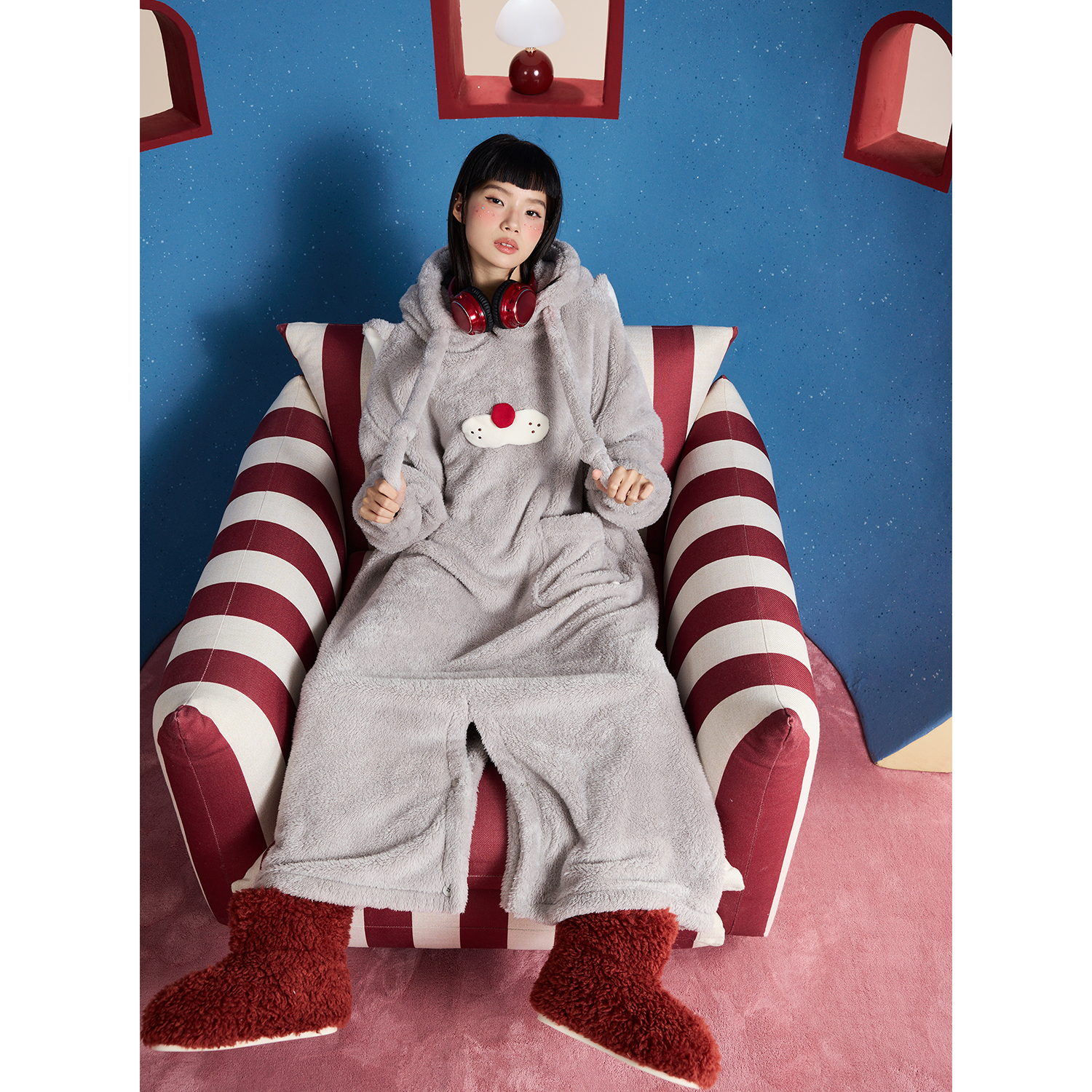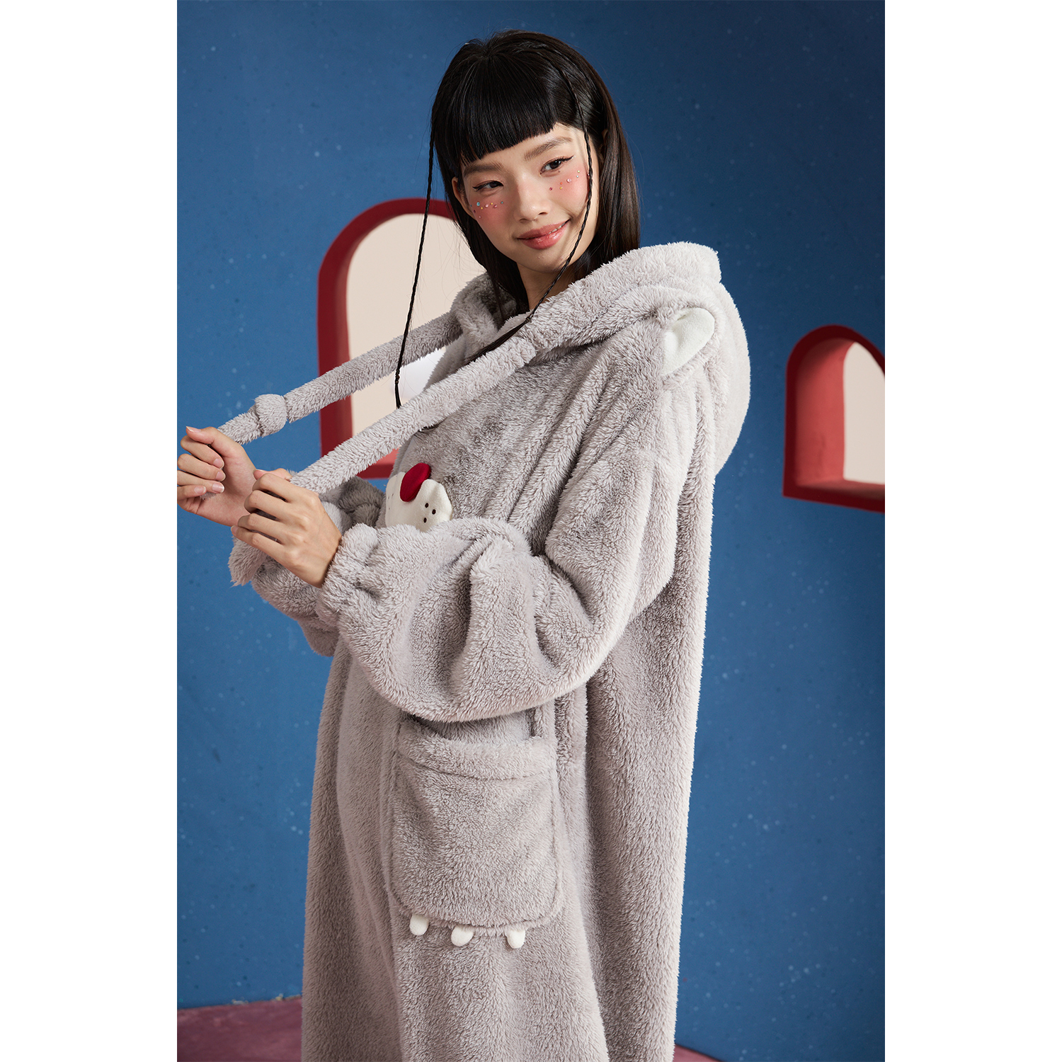 yso【酷猫系列】连体睡衣女款秋冬新款珊瑚绒长款睡裙两穿家居服D