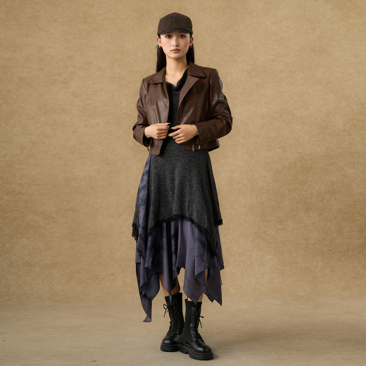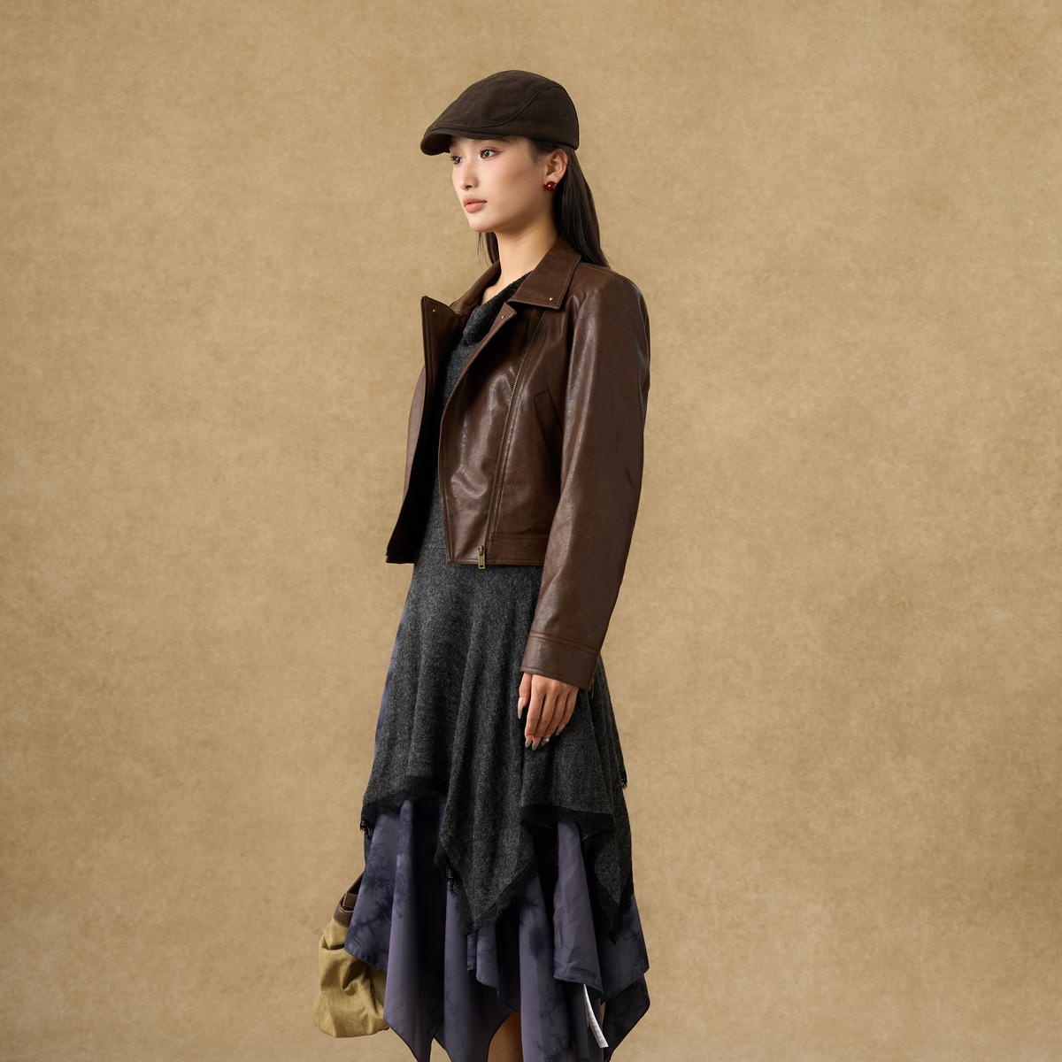 西町村屋潮流外套女装2025秋季新款复古废土感短款皮衣XAAC10627