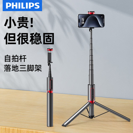 飞利浦2025新款自拍杆落地三脚架手机拍照通用直播支架自拍神器蓝牙连接360旋转手持旅游便携演唱会拍摄架
