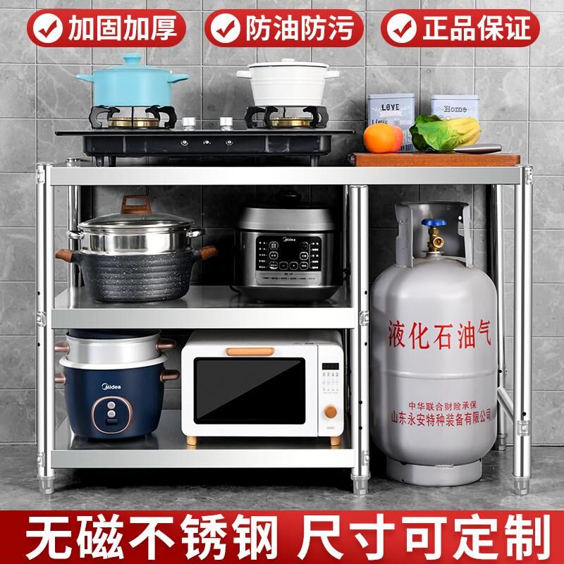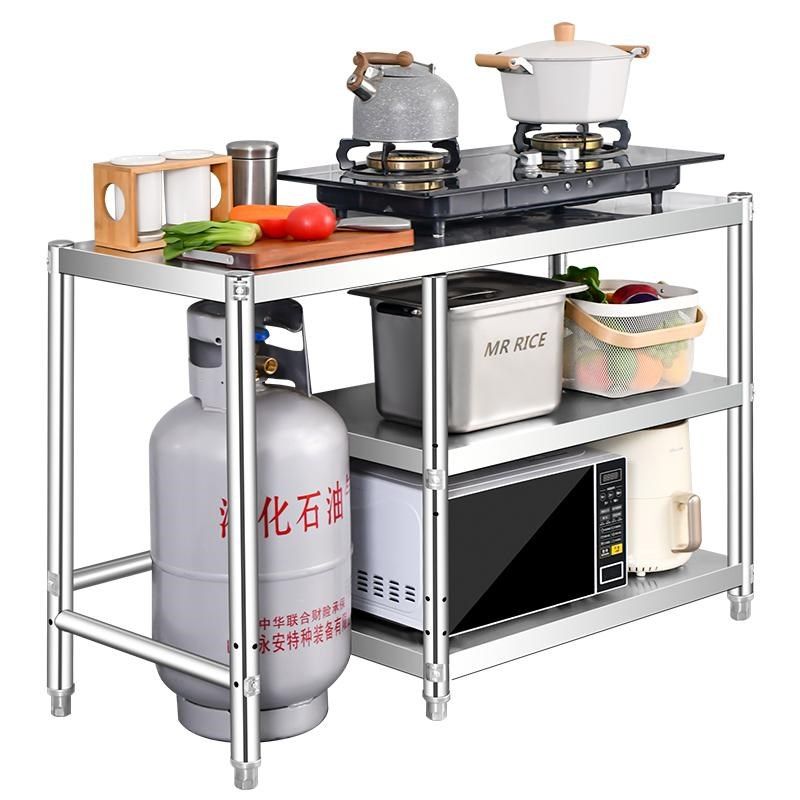 不锈钢工作台面厨房操作台多层z燃气灶台架放煤气罐微波炉收纳货