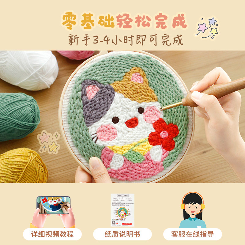 俄罗斯戳戳绣手工diy材料包初学者自制可爱卡通图案毛线画装饰画