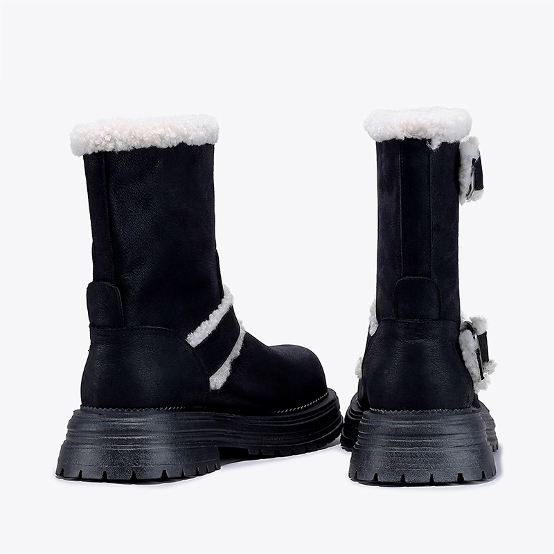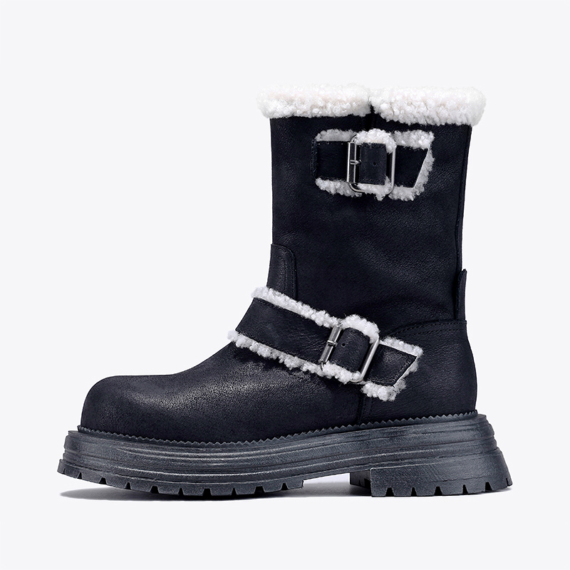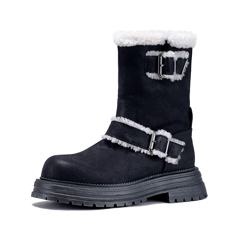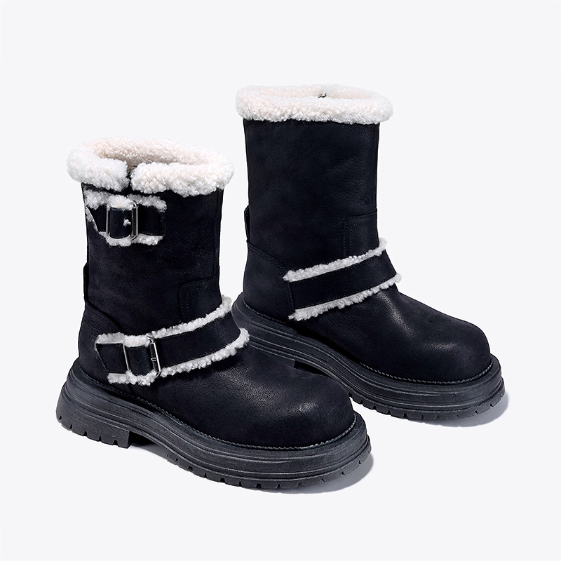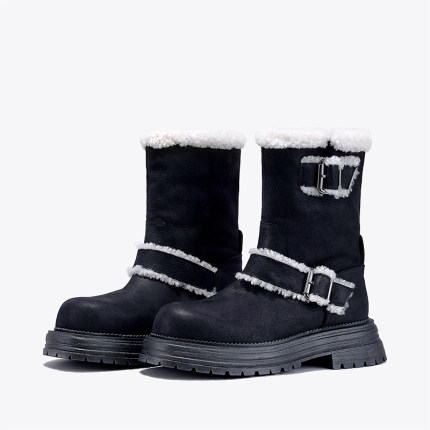 BellaLily新款羊毛加绒中筒靴女欧美雪地靴复古时装靴子