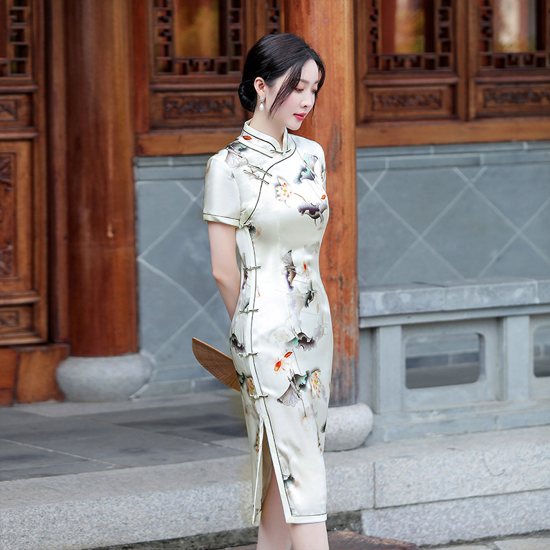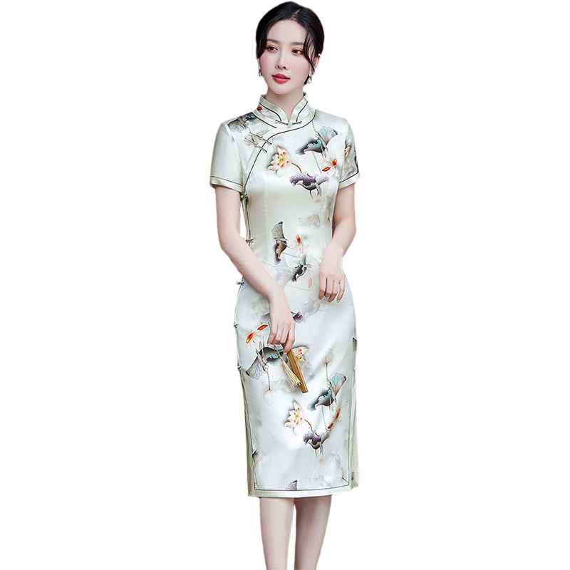 优雅日常中长款桑蚕丝旗袍高端