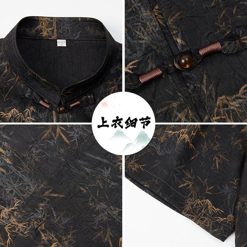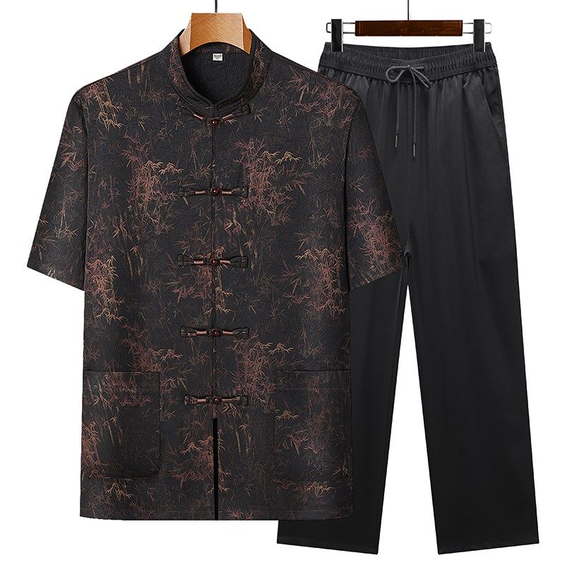 唐装男短袖爸爸夏装套装中式中老年人爷爷夏季中国风薄款复古衣服