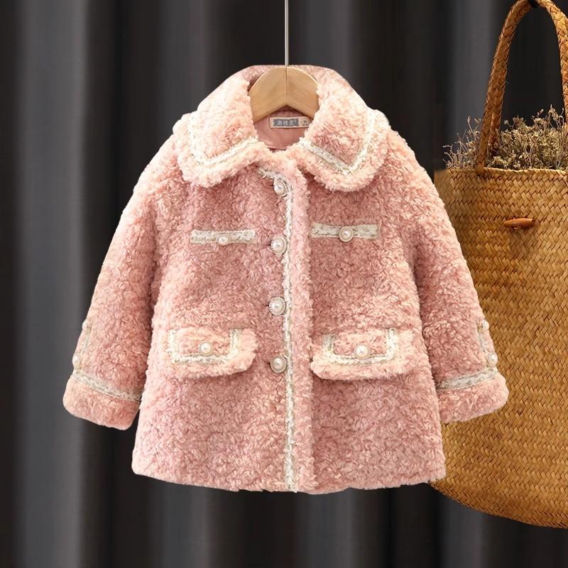 女童小香风羊羔毛外套中大童冬季儿童加厚上衣女宝宝呢子大衣童装