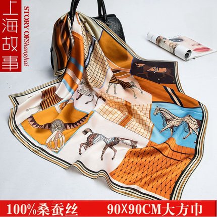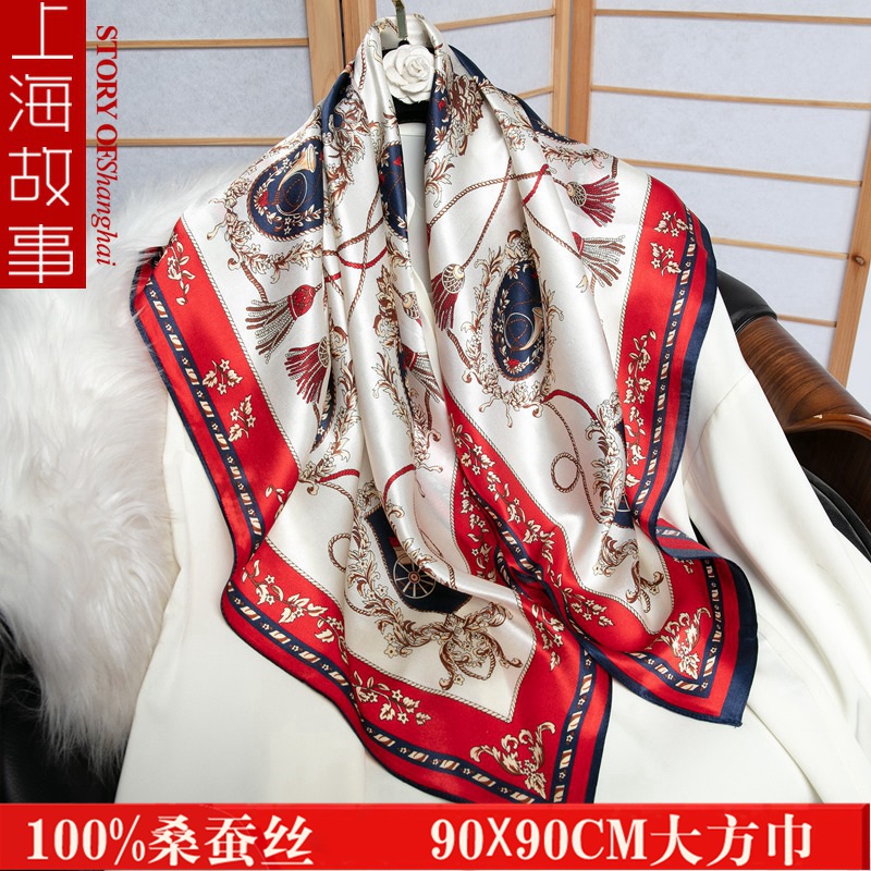 上海故事真丝丝巾女秋冬季大方巾100%桑蚕丝丝巾送妈妈丝绸围巾