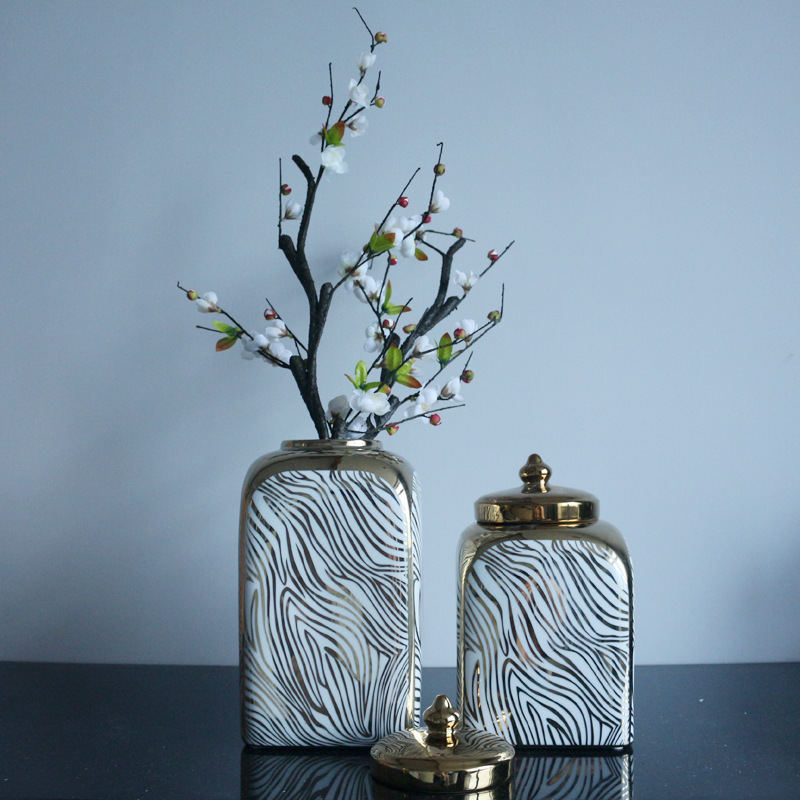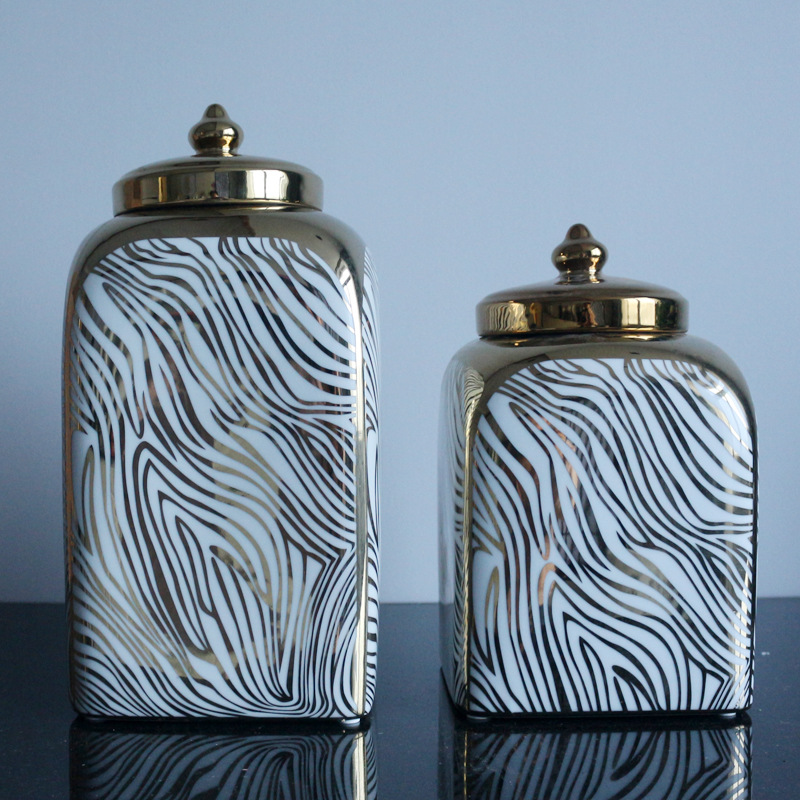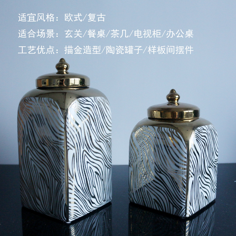 极速欧式描金陶瓷装饰罐储物罐带盖摆件装N饰花瓶美式轻奢罐子