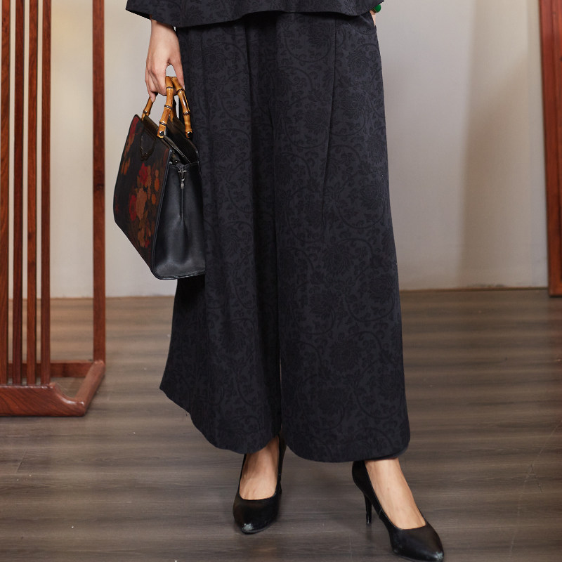 华族经典锦珍加绒裤提花民族风显瘦时尚保暖唐装休闲阔腿裤秋冬