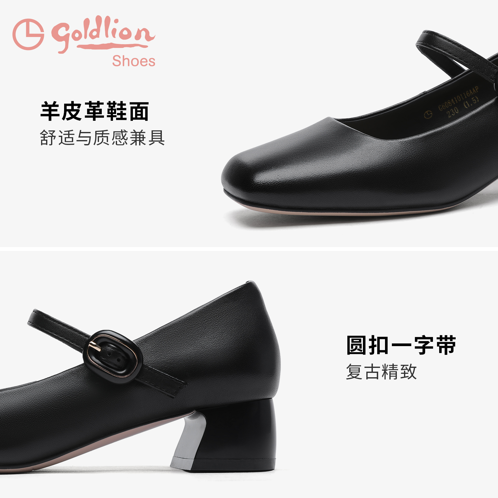 【画报女郎】金利来女鞋春季真皮白色通勤中跟单鞋女粗跟玛丽珍鞋