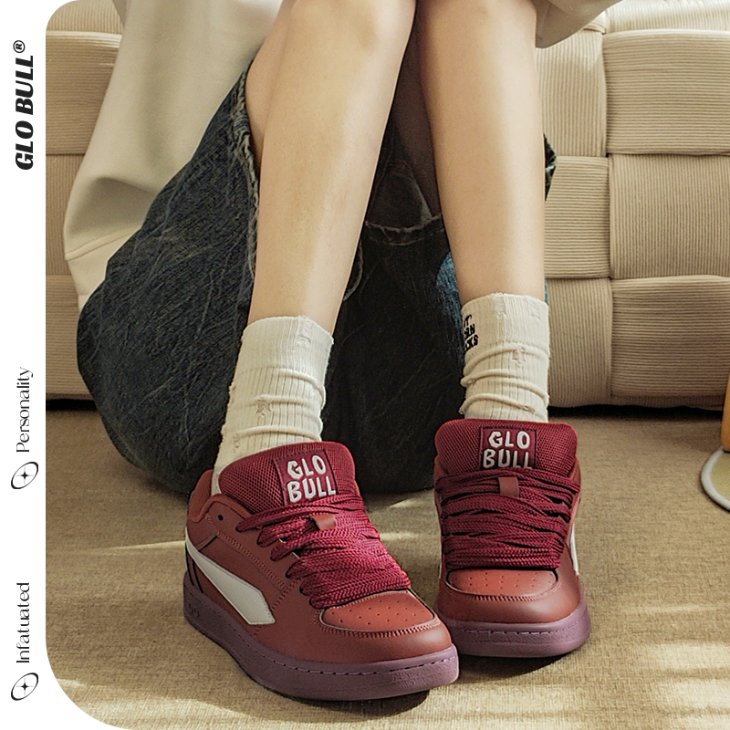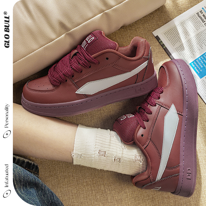 GLO BULL原创正品休闲板鞋女款春秋百搭厚底运动鞋低帮红色面包鞋