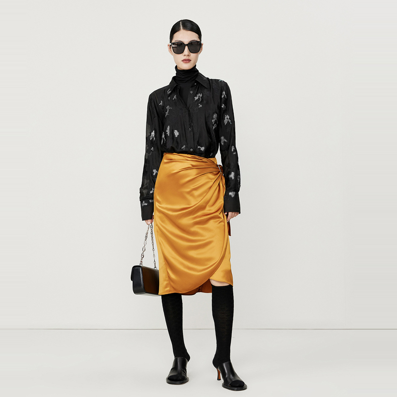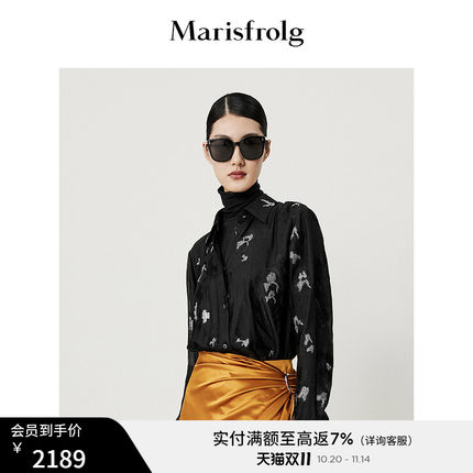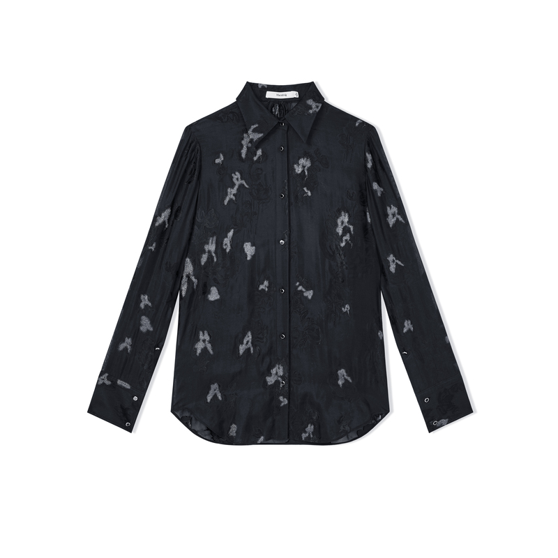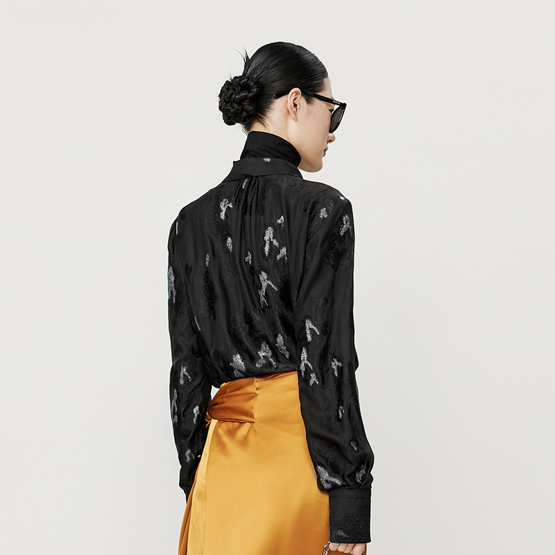 【商场同款】玛丝菲尔春装新款立体提花黑色碎花翻领长袖衬衫