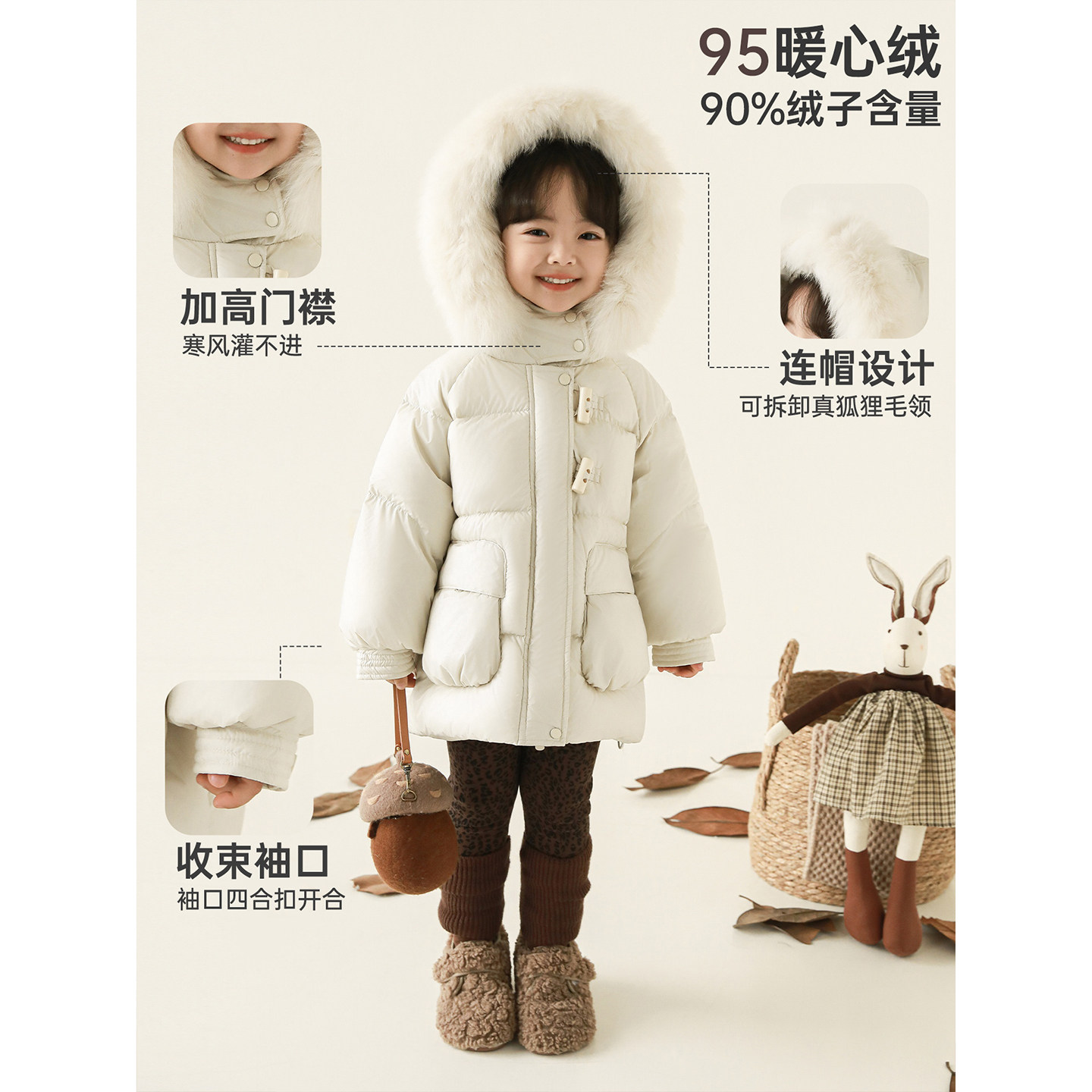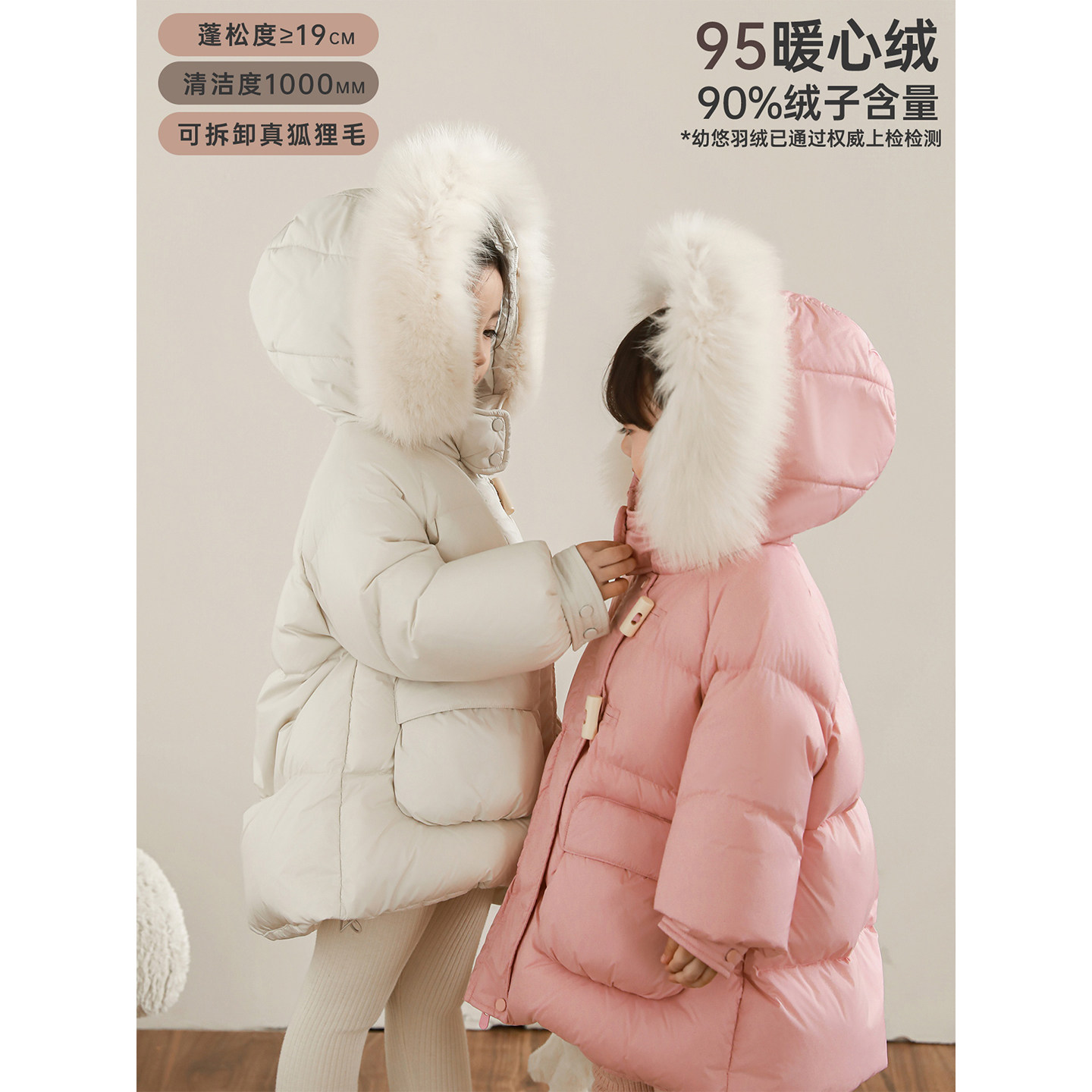 幼悠女童2025冬季新款加厚保暖羽绒服可拆卸毛领95白鸭绒防风外套