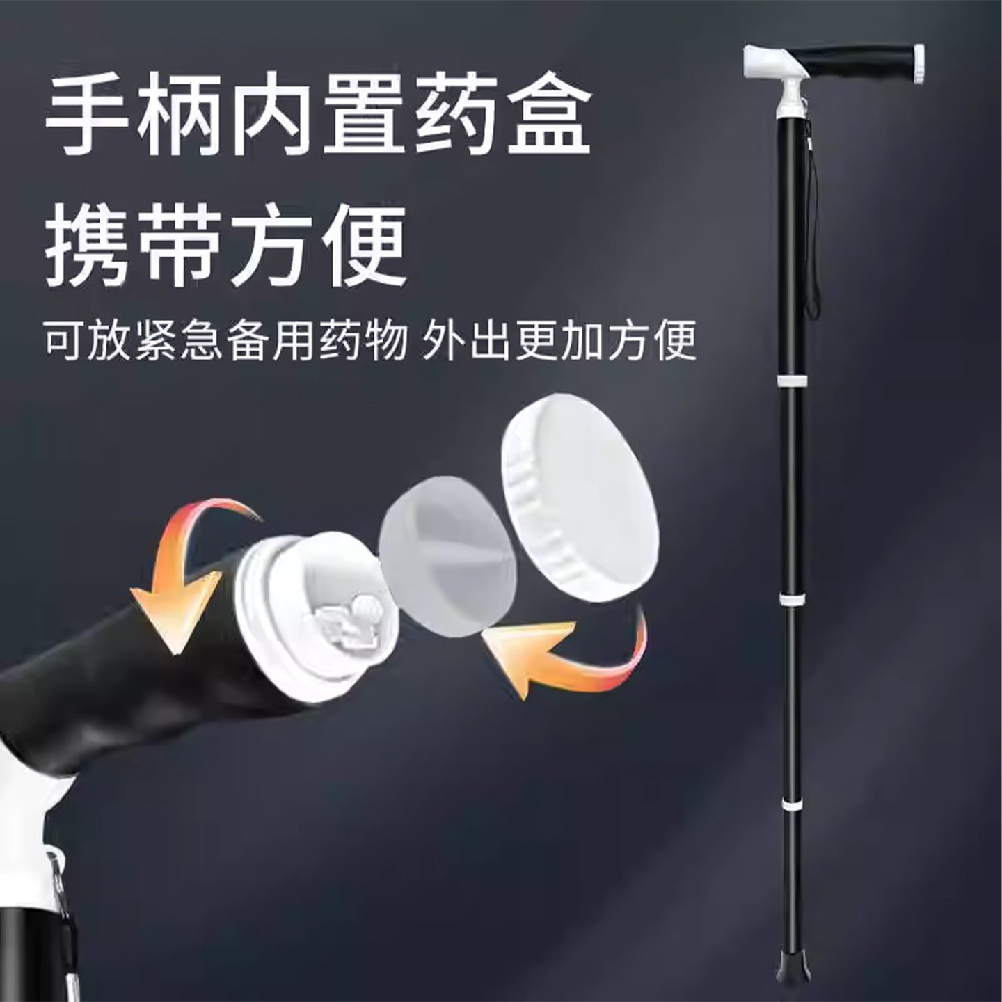 超轻钛合金折叠带药盒款伸缩拐杖