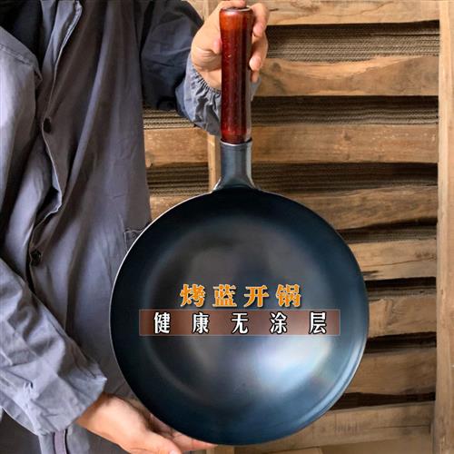 章丘老式铁锅家用炒锅不沾锅无涂层瓦斯灶专用圆底铁锅手工锻打
