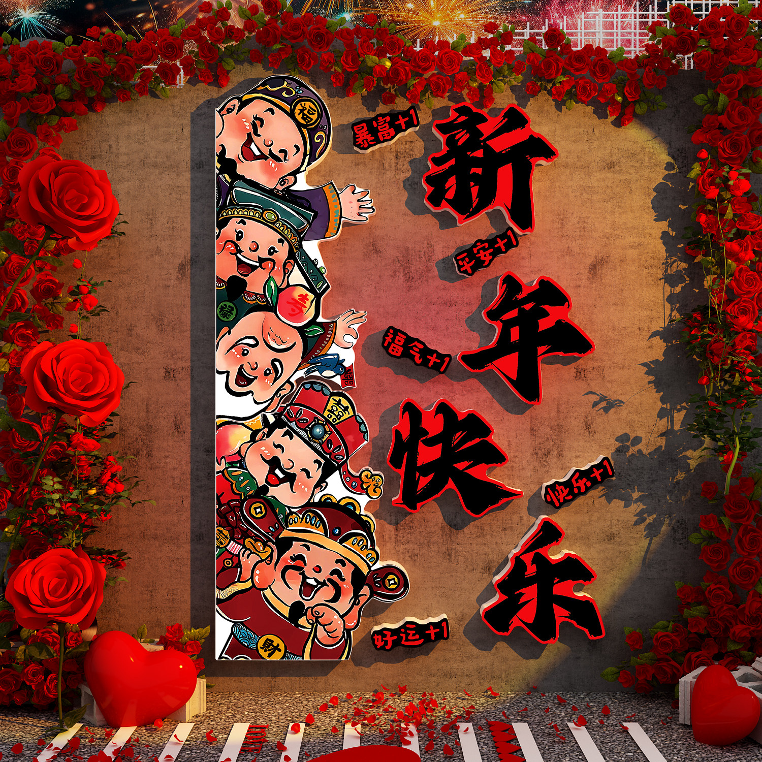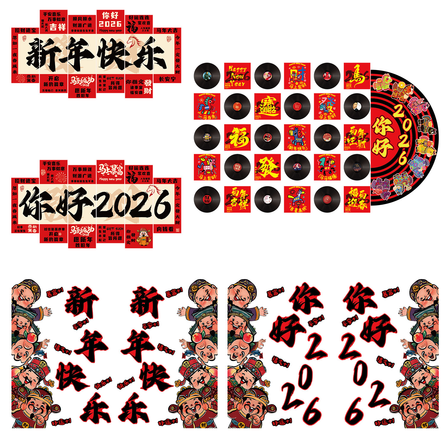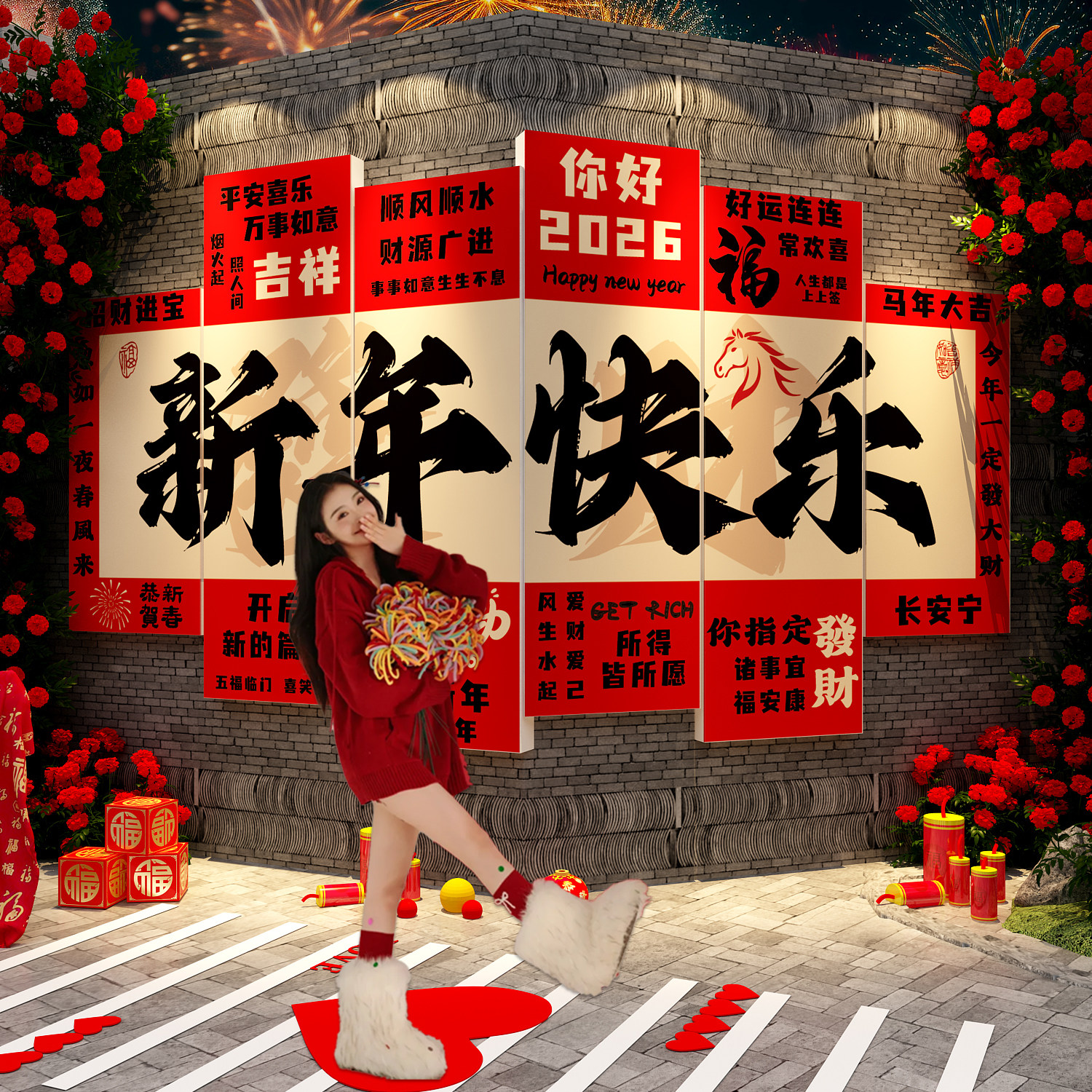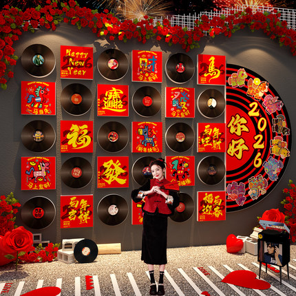 你好2026新马年快乐元旦黑胶唱片墙面装饰打卡布置氛围造场景小院